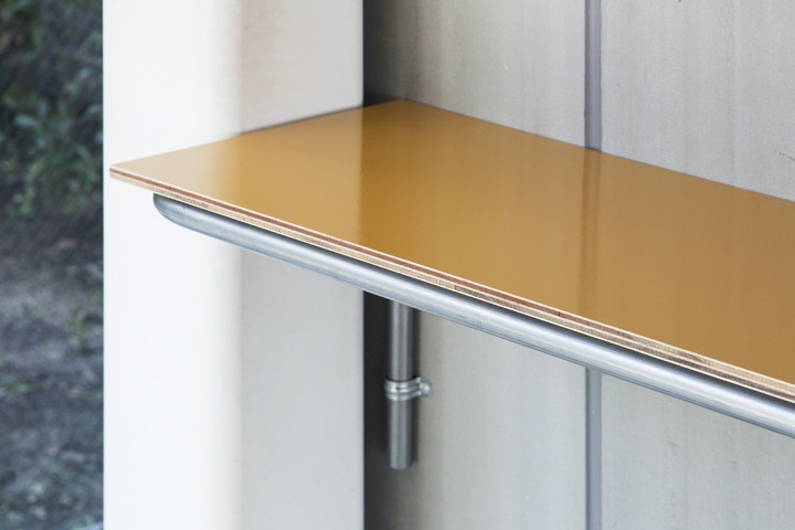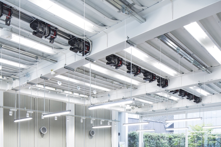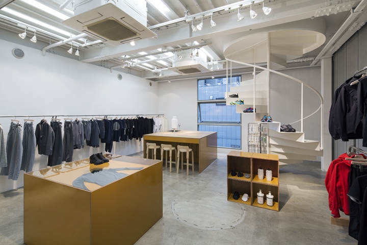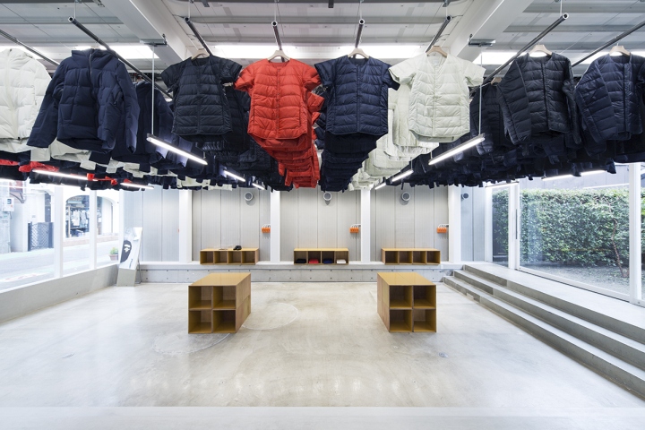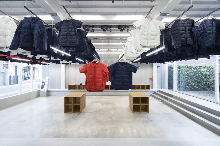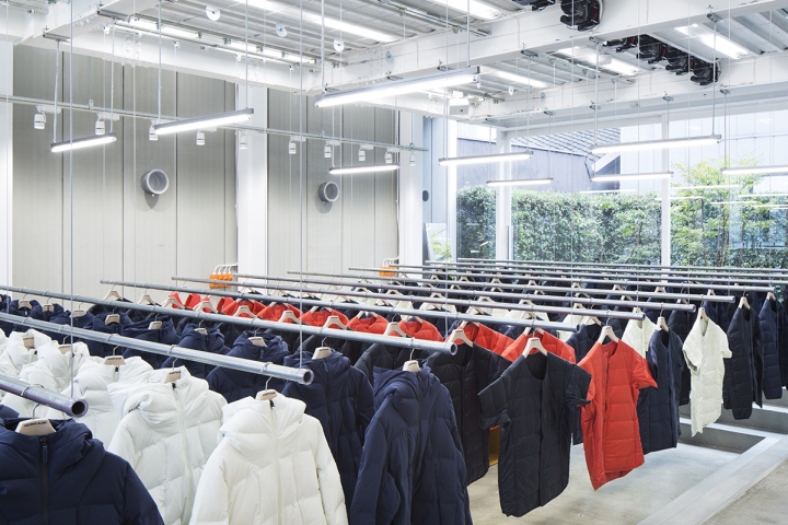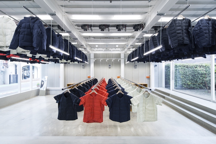 一楼的天花板的高度是3225mm,和车间比地面低525毫米。衣架从天花板移动到地面水平。增加了一系列的垂直运动的衣架,让人们看到上面和下面的产品,产生充满活力和活跃的氛围里面。此外,我们还提供了一个厨房,以及一个花园和一个屋顶空间,以提高店和当地社区之间的积极互动。