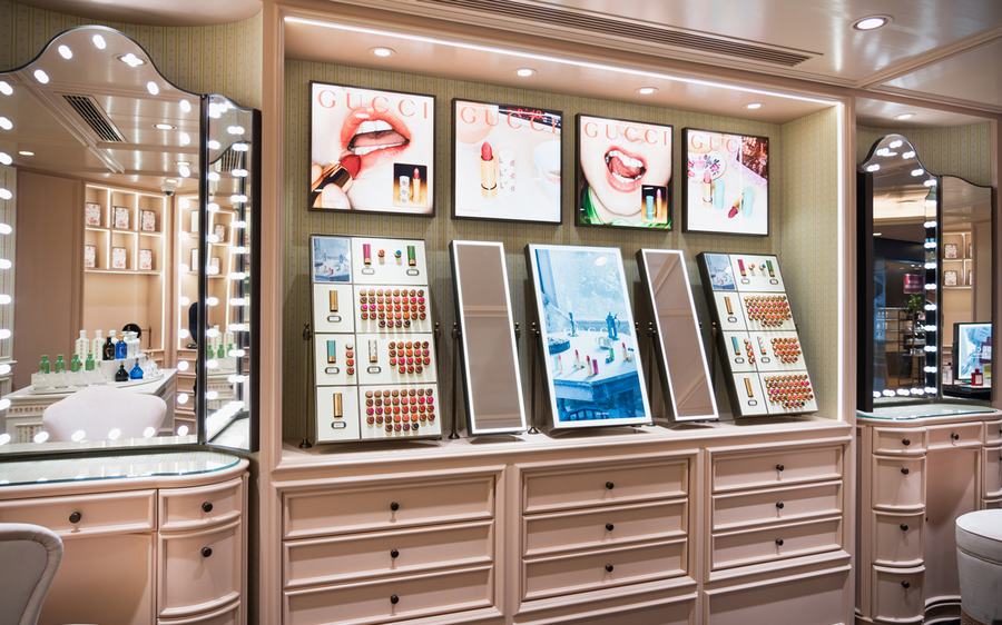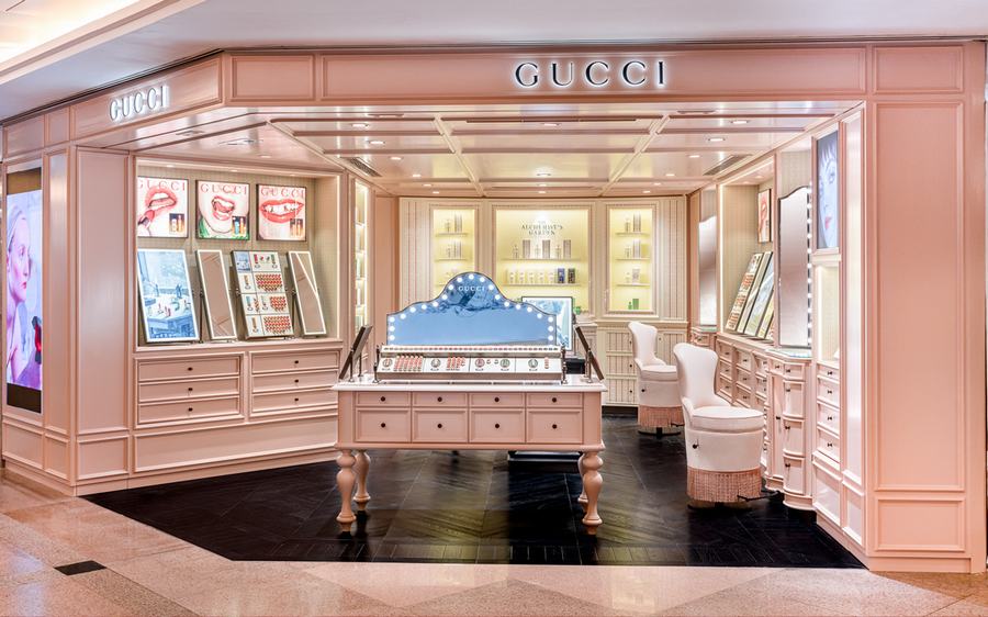 客户以当代的方式探索美,精品店以Gucci香水和新的Gucci化妆品系列为特色,这是在创意总监Alessandro Michele写的美丽宣言下构思的。顾客可以在唇部吧台用古驰美容系列的三种不同口红配方找到自己的完美口红,也可以在不同的化妆站获得古驰美容顾问的个性化妆容。