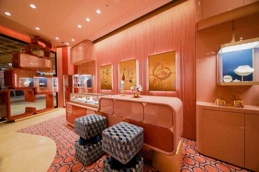 设计师从品牌经典系列汲取灵感,精品店的全新展示橱窗以Nudo镂空样式呈现,整体设计精美灵动、引人注目,同时向来宾完美展示绮丽璀璨珠宝。店铺室内则以奢华的设计细节诠释品牌意式传统美学:为品牌钟情的六十年代米兰风格注入鲜活生命,现代、经典而感性。