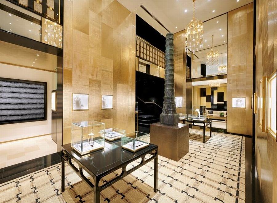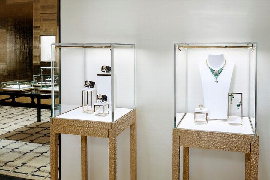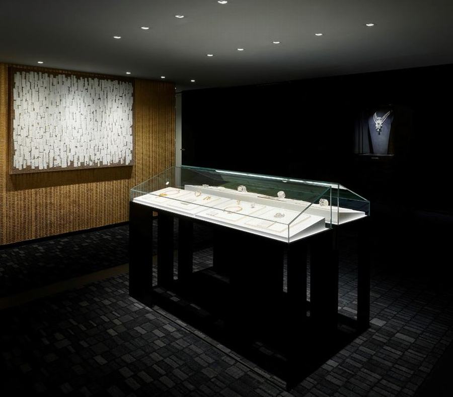 当参观者透过玻璃橱窗,臻品珠宝耀目而璀璨,参观者的目光由此被引向腕表与高级珠宝店的不同角度,不同的场景仿若呈现于眼前的戏中戏。空间中由Delos & Ubiedo设计的优雅边桌与Idris Khan创作的 “Eternal Movemen”作品(2012的作品)也同时映入了眼帘。