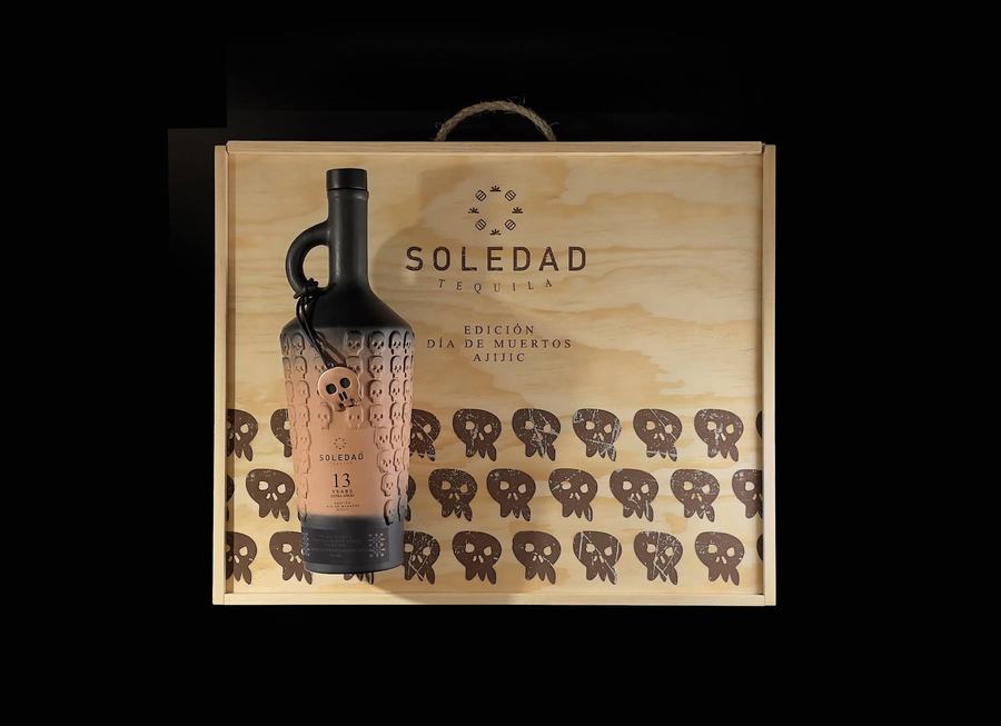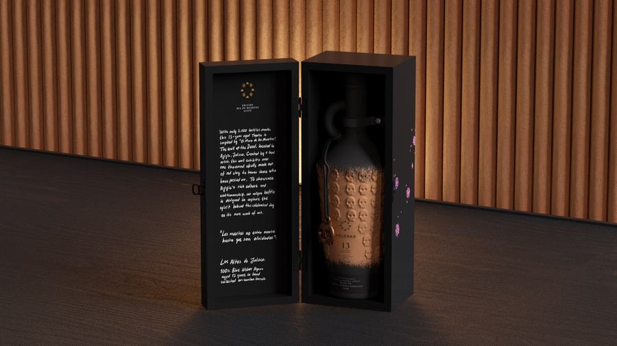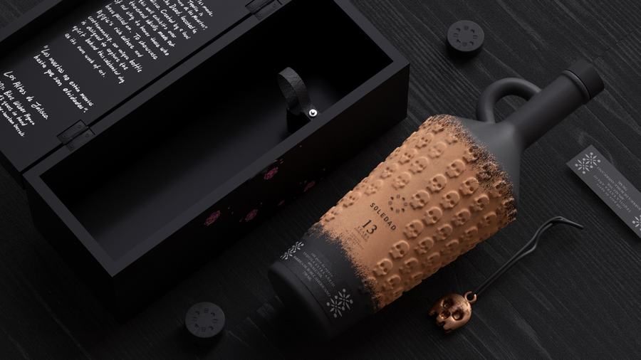 我们为 Tequila Soledad 设计了一个瓶子和包装特别版“死亡之日”。受到死亡、传统和不再与我们同在的人的启发。我们制作了一个限量生产 2000 瓶的纪念瓶。