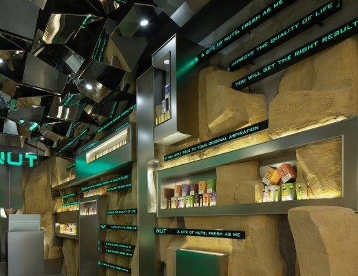 NUT是一个电子烟品牌。在创造NUT品牌形象时,我们以人类洞穴为原型,解构了当代赛博朋克中的冲突感,与自然共存。粗糙、自然、原始的纹理和形状代表着自然的语言。 现代工业,精致的不锈钢材料,象征着人们对品质生活的追求。这两者在同一空间中相互交融、相互矛盾。空间中技术与自然对抗的关系也象征着人与自然的关系:探索、获取、消费、修复。 天花板镜面不锈钢排列的变化组合扩大了这种冲突感的节奏,也暗示着可能性和 [...]…