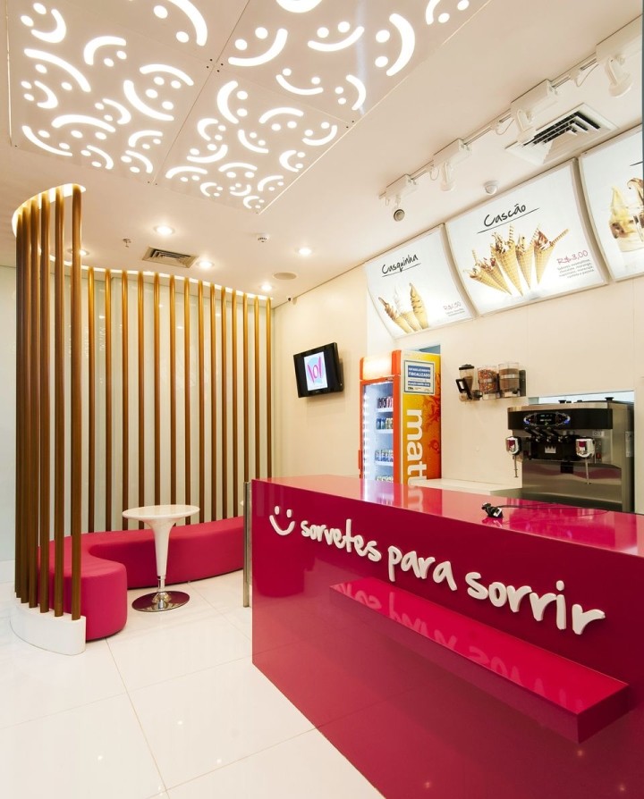 大胆突出,冰淇淋店–LOL在乌贝兰迪亚,巴西专卖店设计概念定义的形容词:一个新的公司,目的是把自己变成一个国家专营。它只是45平方米容纳六间分布在店内服务,小面积、员工休息室、办公室、供应室、空调机室,换句话说,一个挑战!该店面积19米2和分为三个空间:客户服务区,服务空间和休息区。 主要客户的要求是,新公司的形象应该克服传统的设计,建立了冰淇淋快餐店的购物中心,这样的概念,如创新,舒适和满意的用 [...]…