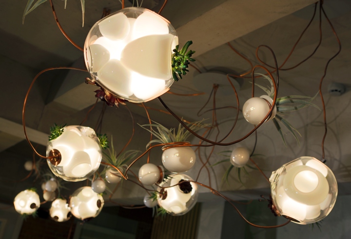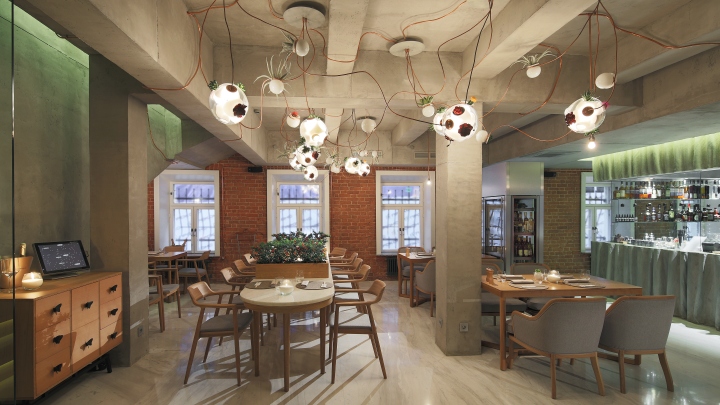 客户的想法是在一个历史悠久的豪宅及商场的墙壁之间的覆盖区域中创建一个设计师的小酒馆。一个房间的餐厅位于一个相当复杂的覆盖空间 – 一个历史悠久的豪宅面部和商场的固体玻璃墙高12米之间。根据设计,总面积为380平方米,包括豪宅也容纳了厨房和所有的工程和公用设施的房间的前提。其中一个项目的核心思想是在墙上最高的12米和168平方米面积的园林绿化。它会开花,散发出的气味,呼吸,变老,改变它的外观。它生长的各种植物和莫斯科的客人肯定会欣喜地发现自己在这些丛林之中俄罗斯的冬天。