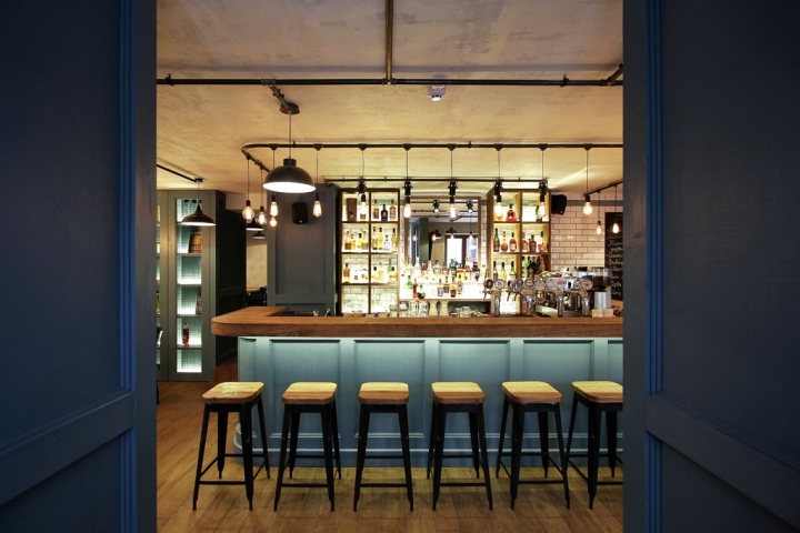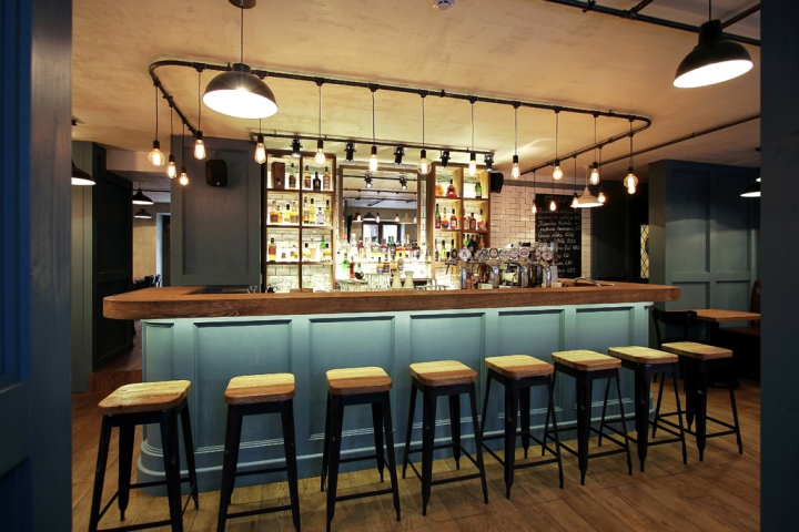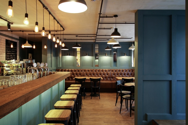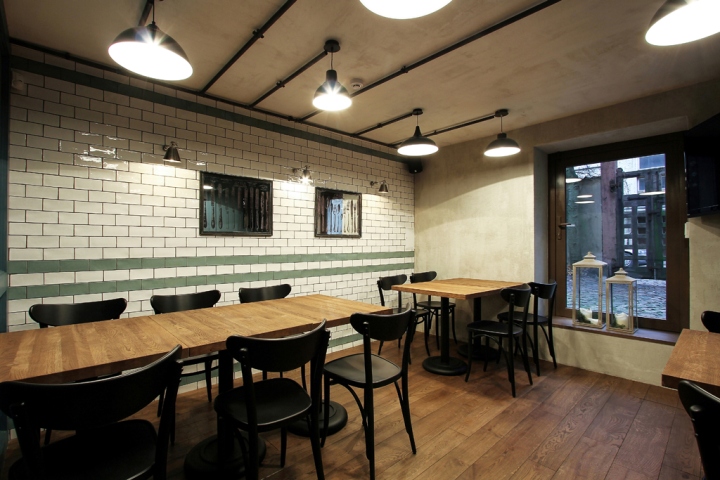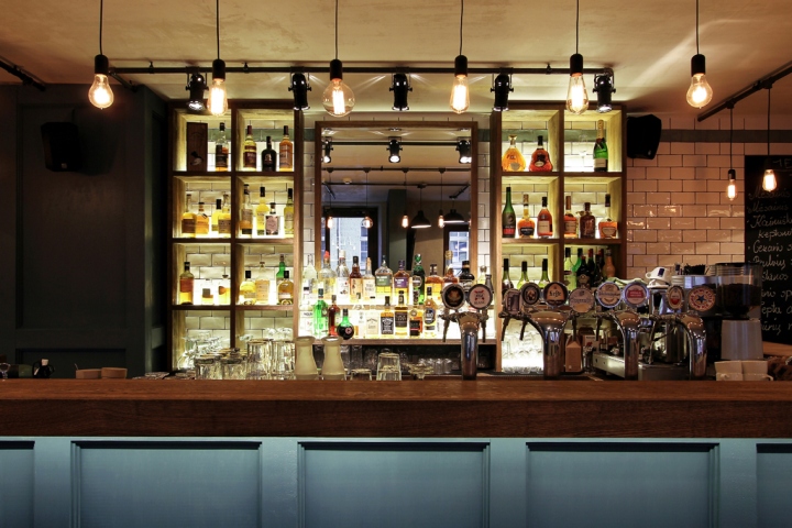 酒吧的灯光是类似的,根据普通的电线与灯泡插座和裸灯泡。所有这些解决方案创建一个酒吧,一个图像,这是不是与细节,同时负担过重不失去内部图像典型的这类场所。这个对象也提出了名称,以及外观和内部标识设计的想法。