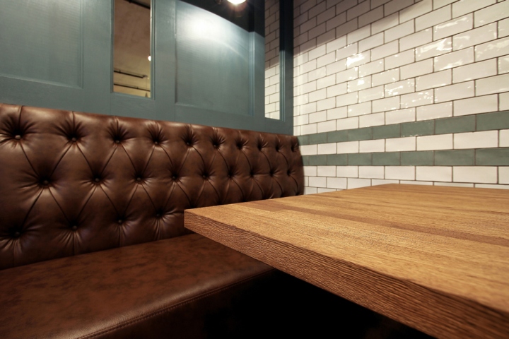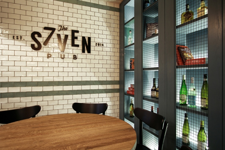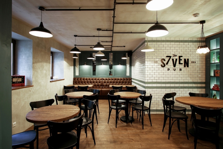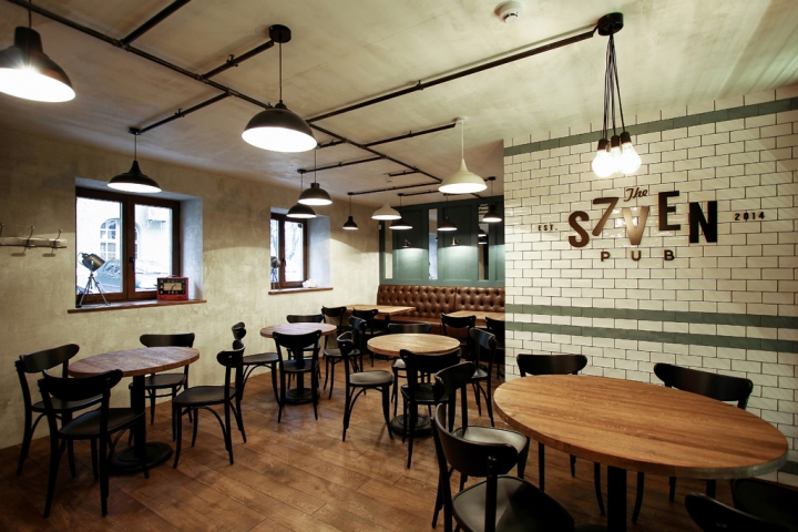 通过共同的协议,它是决定的过程中设计的酒吧“七”向一个更现代和纯化的方向,虽然没有忘记的关键元素,形成了酒店的形象。该房屋的装饰有彩绘的木饰面板、框架镶件和部分瓷砖墙面。顾客可以坐在切斯特–风格的家具,装饰用人造革。