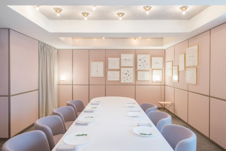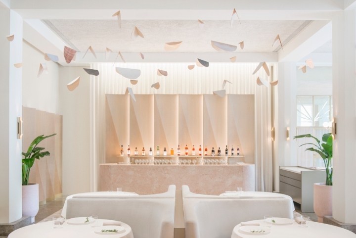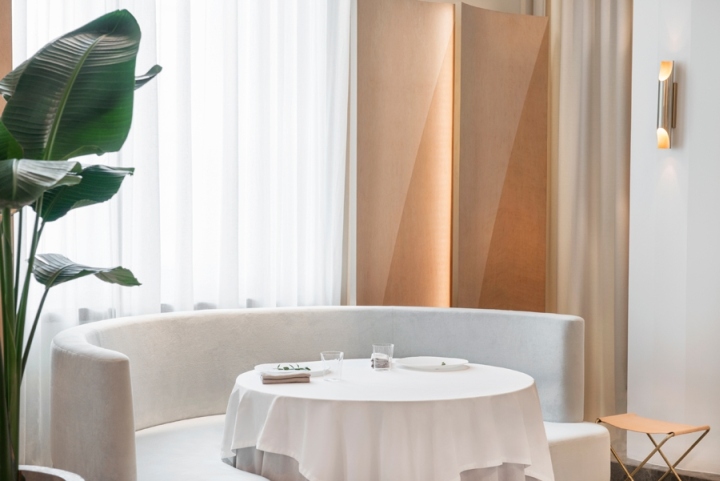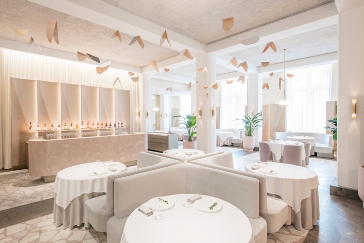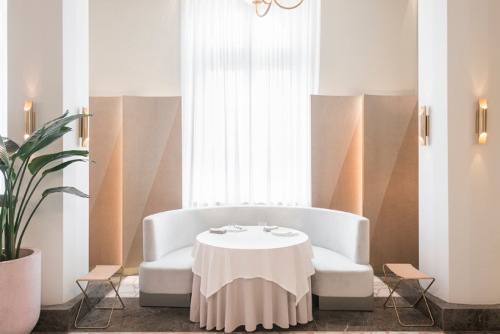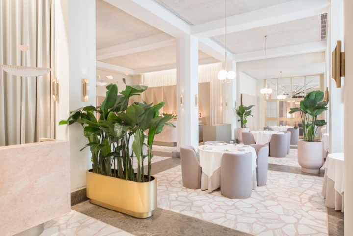 通过描述菜肴的完整的话一些指导,内部空间的精致,精致典雅。轻快的气氛与柔和的色调天然木材,粉红色的水磨石大理石和黄铜和镍飘扬的细节。用一层日光,原材料在自然状态下闪烁。设计保持了殖民时代的古典建筑的参考层,面柱在饭厅里倾听到画廊的科林斯同行和在palladiana大理石大厅的一种解释。