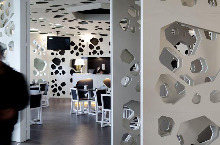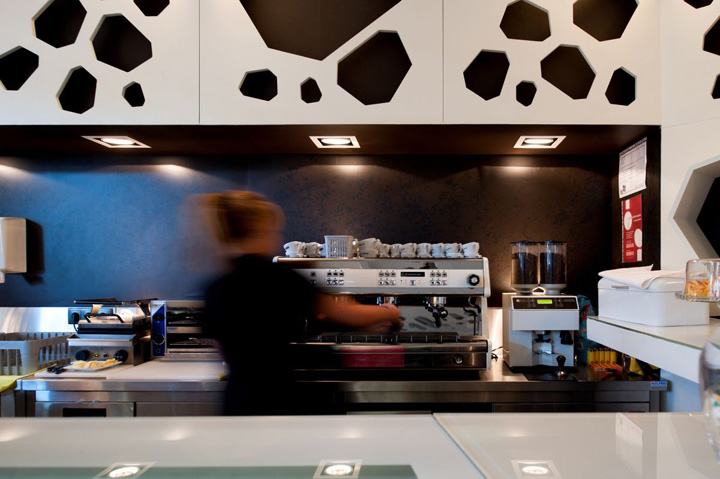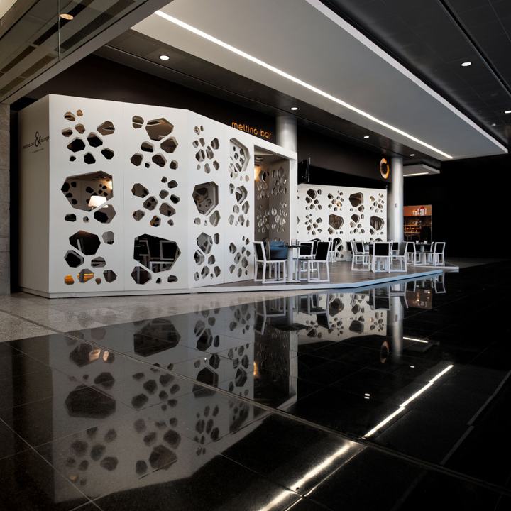 一次,portugeuse照明和建筑事务所设计,设计了布拉加梅尔提诺酒吧及酒廊,葡萄牙。梅尔提诺酒吧是一个地方,打算更新一个咖啡嵌入在一个购物中心的概念。具有设计元素的强大存在,家具是咖啡衍生的结果,为了让这个社会同化的地方,作为一个酒吧的奇异性。两者都是相似的和透明的,虽然有着不同的用途。休息室的网站有一个轻松的氛围,并提供美食产品。酒吧的网站被拨到喝咖啡。CLá的哥斯达黎加,LOFF工作室导师,构思这个项目从咖啡颗粒的几何化,始终以关注排除在空间呈现给最终消费者的想法,他们在一个商业画廊喝咖啡。最终的结果是由咖啡颗粒,而不是购物布局的入侵。梅尔提诺酒吧是咖啡粒,偷窥,穿透墙壁,屋顶和计数器。