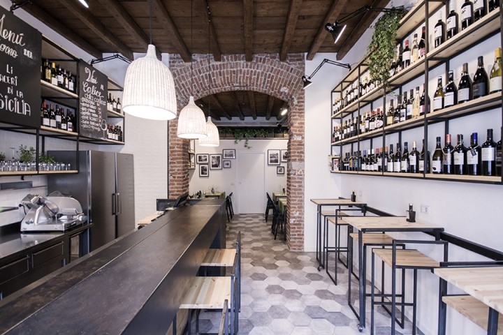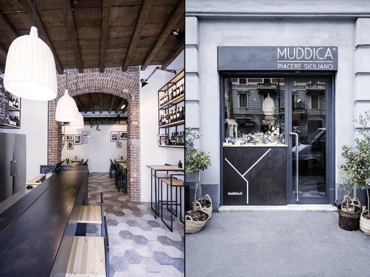 工作室鼎帝将以前的裁缝店“muddica ‘,一二间餐厅和西西里的熟食店。客户要求一个舒适和友好的地方,坐在那里吃或只是购买传统产品。建筑师回答这个请求创建两个“层次”墙底部是专门食用,而产品暴露在顶部托管铁货架系统。