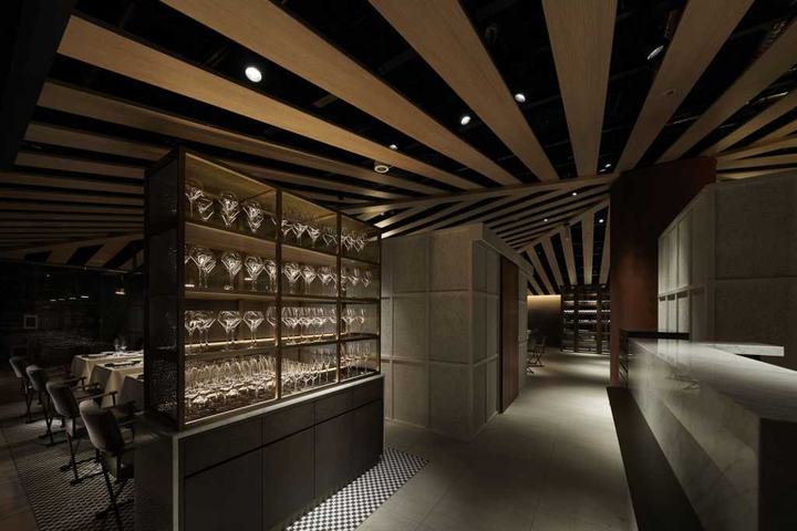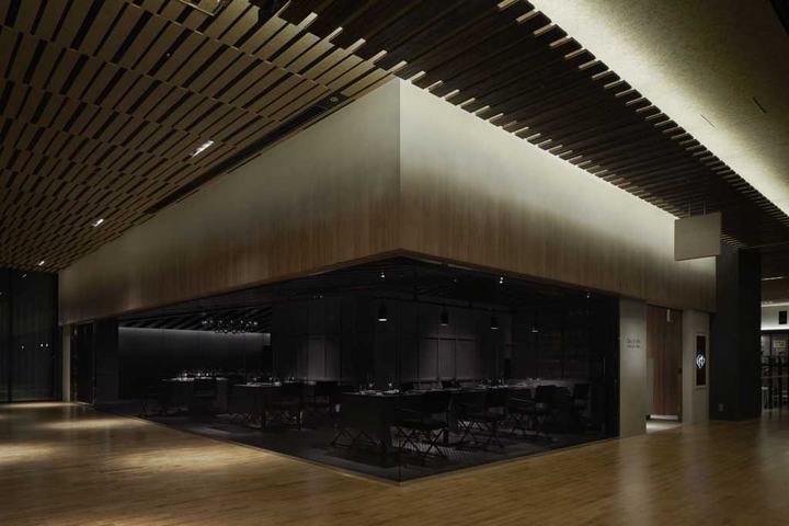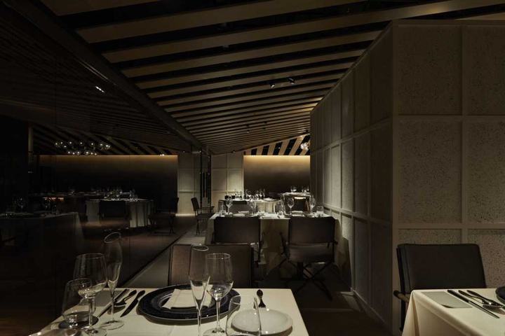 另外,为了强调那家餐厅对医疗、健康的注重,他们要求把设计围绕“Clean”“Warm”“Peaceful”这三个关键词展开。而现代主义风格的设计构想一旦选址于大广场内,恐怕会给人造成单一的(如:医院,低成本设计的)画面感。因此考虑要打造国际性的有良好用餐氛围的环境,我们采用了以野营用的奢华帐篷为主题的设计,在简洁的空间上,履以大大的顶蓬,是因为世界上谁都认为露营用餐很舒畅。把帐篷房顶的因素轻轻地盖上在简单的空间,用原创诠释了所有的关键词。再加上帐篷的视觉效果让人联想到旅游,这也在最大限度上展现他们的饮食理念。(杉山敦彦/THE WHOLEDESIGN)