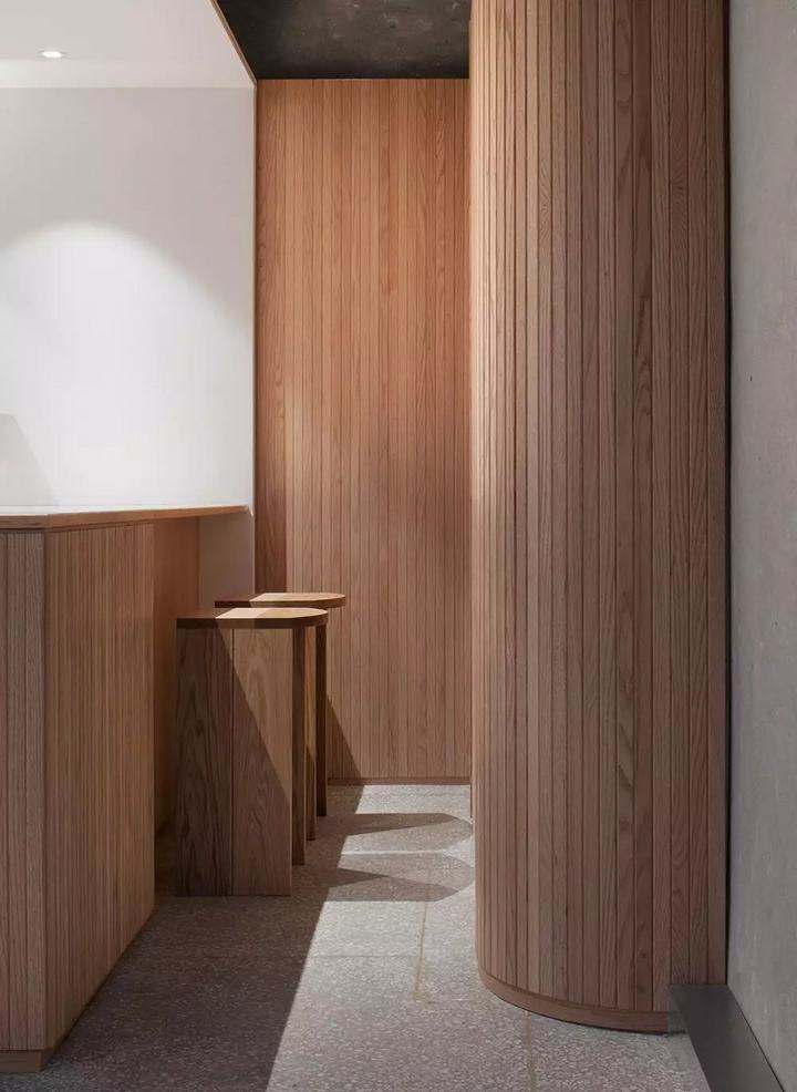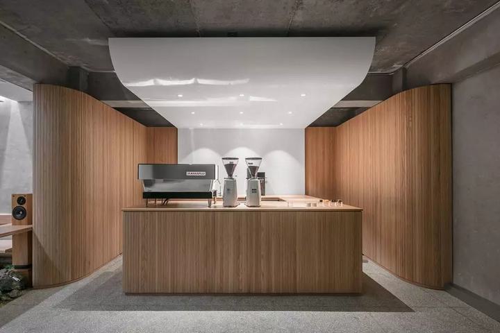 这家咖啡馆位于一条狭窄街道的尽头,占据了现代红砖结构的底层。部分沉入地下,58平方米。(624平方英尺)空间有一种隐蔽的感觉,这是进一步加强了室内设计的本地实践实验室,配对传统的韩国元素和现代低调。水泥灰泥墙、水磨石砖和裸露的混凝土天花板构成了光滑的背景,这些背景是由未经处理的木材制成的。当进入Oriente咖啡馆时,游客们会碰到一个服务站和酒吧,那里有两个凳子,上面有一个未来派的白色遮阳篷和一块竖直的木条镶板。