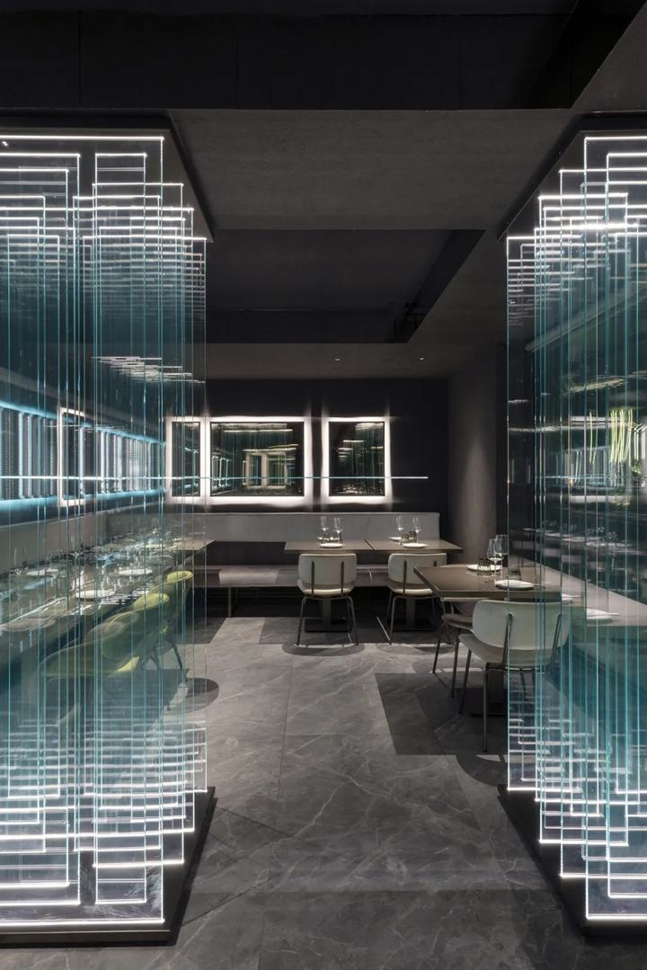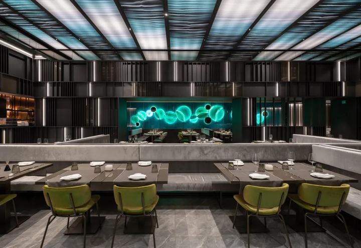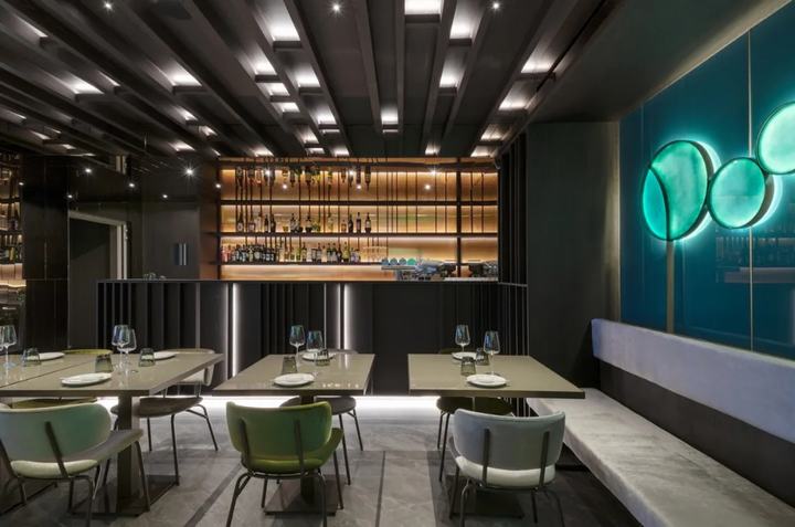 意大利建筑师Maurizio Lai精心设计了一个灯光、色彩和抽象几何图形表达出强烈创造性的构图语言的地方。对于Moya这家融合美食餐厅来说,明亮的装置和几何剪裁在一个必不可少的容器内反复出现,建立了一个意想不到的身份模型,与标准化亚洲餐厅的印象相去甚远。