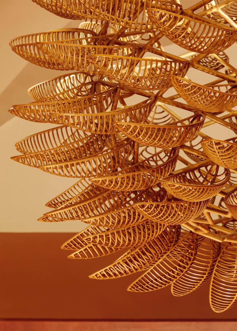 餐厅的标志性空间,被称为“茧室”,让游客沉浸在起伏的内部景观中,波纹形式和自然纹理。整个房间镶满了MtWoods公司生产的木制品。面板的设计采用了生成模式,其机械雕刻的波纹灵感来自于自然界中水中和空灵的元素。