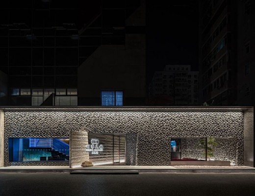 餐厅中倾斜的曲线结构在空间中自由组合。流畅的平面和破碎的曲线形成流动的空间场景。整体空间为半封闭式,既保证了私密性,又能让人在走进去的时候享受到不同的场景,有不同的感受。昏暗的灯光环境强调人是空间的主角。