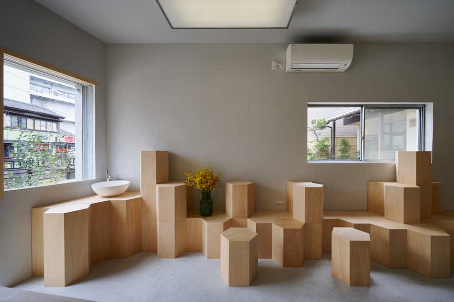 另外,模仿岸壁的柱状节理制作的原创长椅由六边形柱子构成,实现了立体的组合和运动。作为活动的据点(= BASE),面向未来,我们期待着在人与空间交错的风景中,成为“对马岛的据点”。