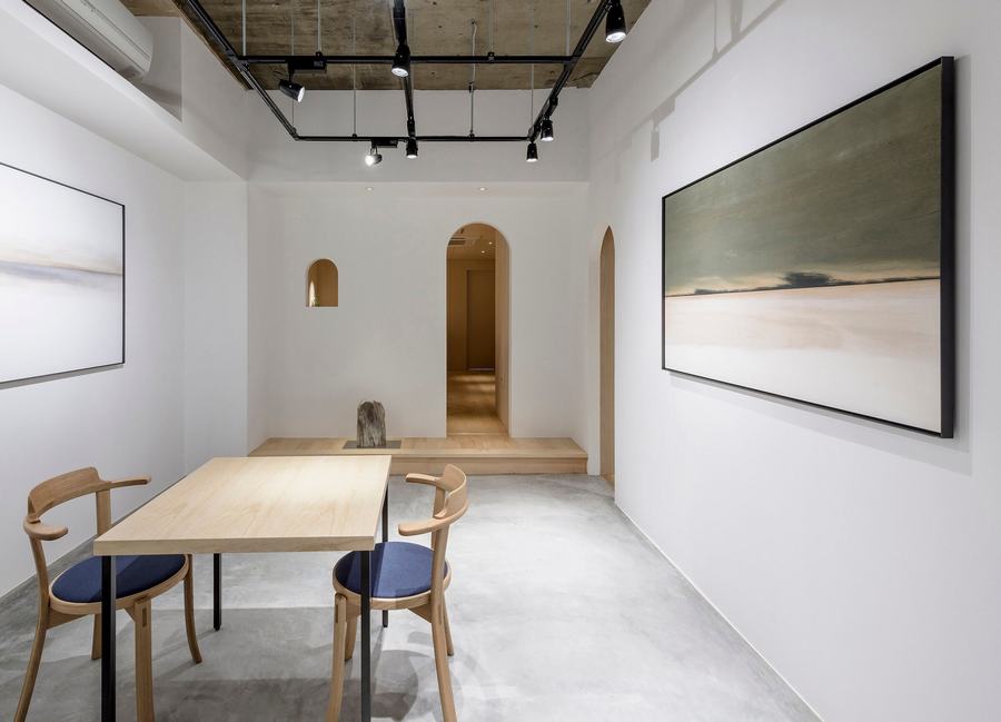 当你打开巷子里的推拉门,你就进入了巷子尽头一个小广场似的空间。这个空间也是一个画廊空间。还有一扇通往私人房间的推拉门,正对着小广场。当你打开门,你会到达一个亲密的空间。