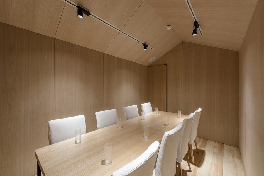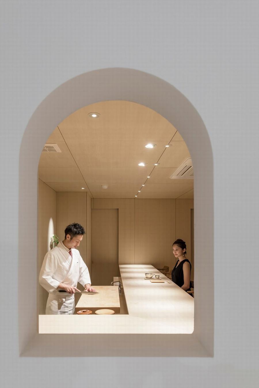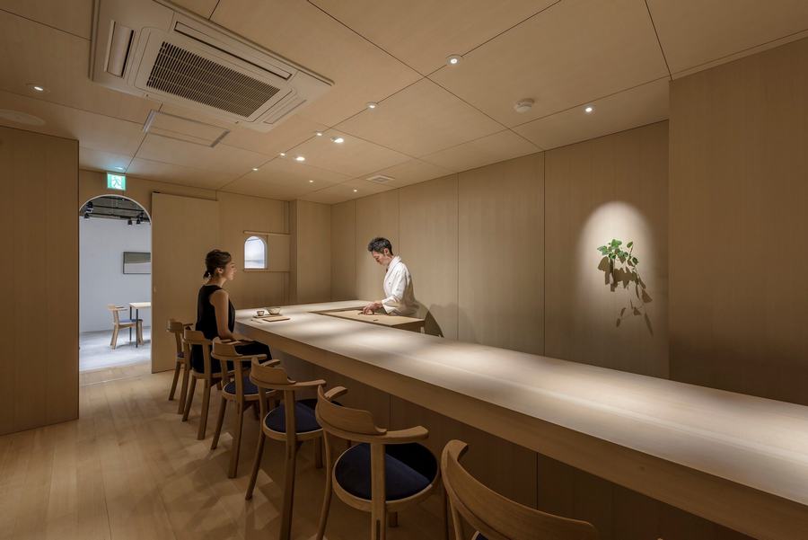 这个项目是位于札幌市中心的寿司餐厅的设计。我们在设计餐厅时,往往认为空间的每一部分都必须完整设计。然而,这一次,我想通过创造一个像胡同一样的空白空间来最大限度地提高重要空间部分(柜台座位/包房)的密度 .