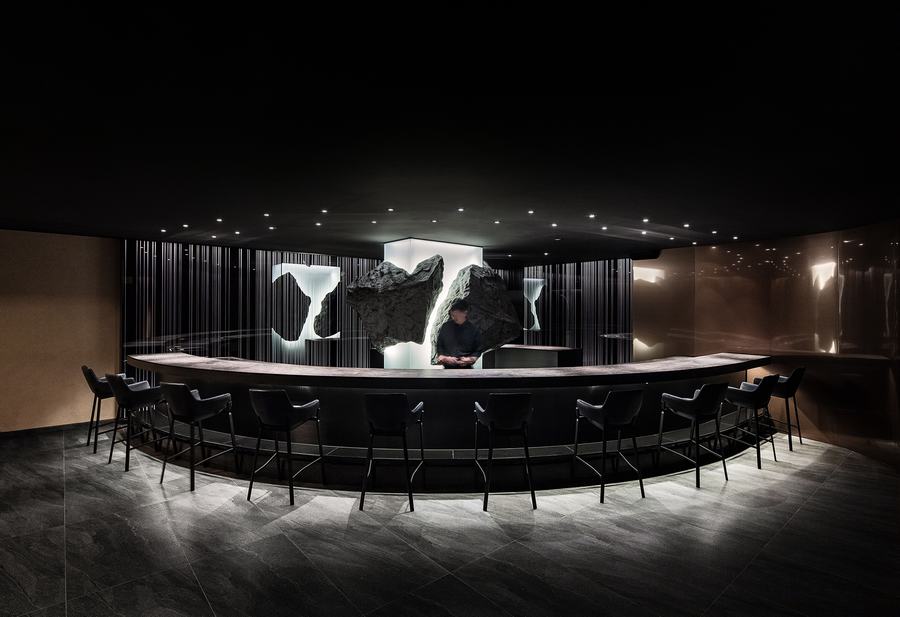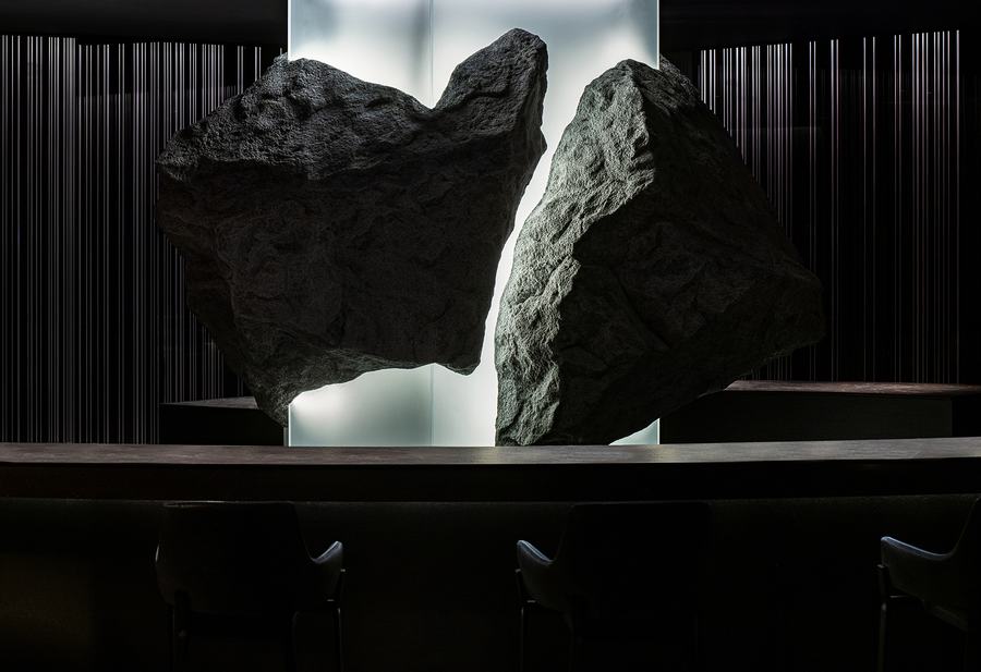 Kappo Akii被设计成只要你从酒店大堂乘电梯下到地下2层就可以到达,为人们提供一种与新世界相连的新体验。Kappo Akii的主要空间是一个圆形的吧台空间。艺术家李泰秀的作品是镶嵌在灯杆上的石头。这是一件空间作品,专注于视觉、图像和真实事物之间的差异所产生的轰动的交集。在吧台里,厨师们的动作充满了空间,并通过活力将其升级。