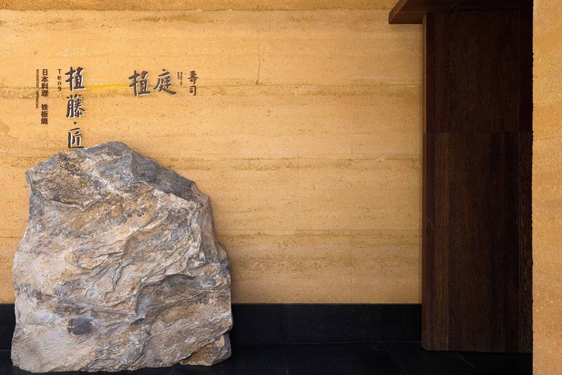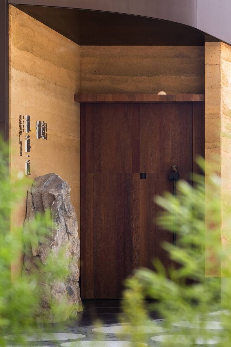 这家餐厅位于深圳福田中央商务区的一个商业综合体的底层。它就像一个自然生长的“有机体”,隐藏在一个安静的角落里。石头、树木、泥土和植物等自然元素定义了它的入口,与周围的现代摩天大楼和繁华的市中心区巧妙地平衡。