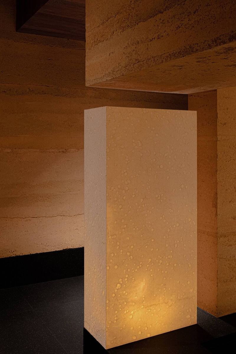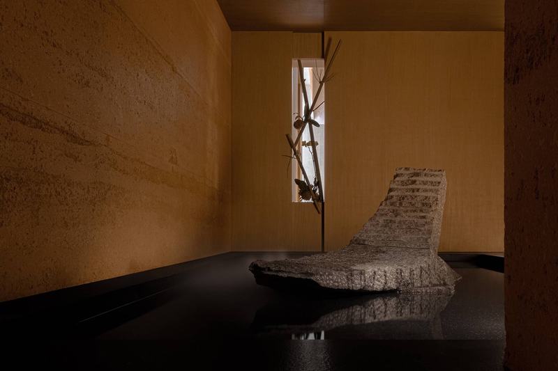 夯土是一种中国传统建筑材料,用于覆盖前部区域的内表面。它与船形石雕一起营造出室内庭院景观,同时有助于优化空间的通风。主用餐区使用各种廉价的天然材料,如水磨石、木材和纸张,引入织物作为隔断和窗帘,并创造出大面积的空白表面。基于极简主义的设计语言,它被赋予了友好的规模和光线环境以及弹性的微气候。