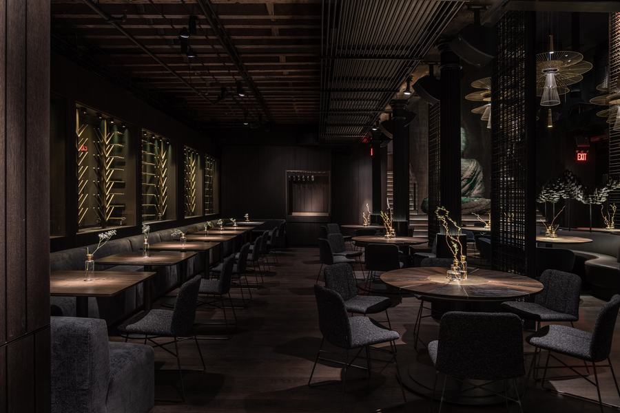 (Buddha-Bar New York)是一家位于曼哈顿翠贝卡(Tribeca)社区的两层餐厅,主打亚洲美食。这个项目的主要的概念是轮回。我们在材料、空间和大品牌的重生中表达了这一点,这一历史始于1996年在巴黎开设的第一家Buddha-Bar。