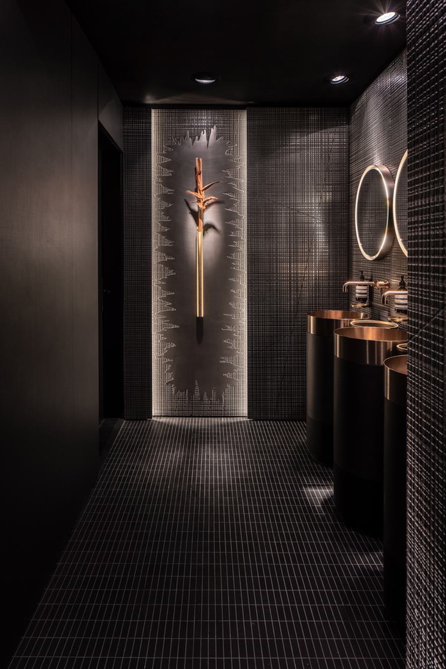 主餐厅的大型金属吊灯是由Kateryna Sokolova设计的法国品牌Forestier。它们有一种东方情调,但同时又像一些未来时代的无人机,静静地悬在空中。