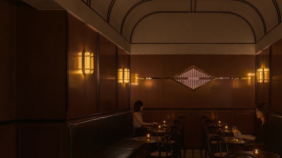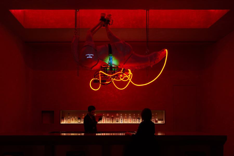 在三个不同的空间体量中,设计师试图打破每个空间的视觉单调性,并微妙地增强空间的凝聚力。因此,该团队没有使用绘画装饰墙壁或天花板,而是采用了具有挑衅性的三维装置设计,它们遵循与环境对比的相同逻辑。设计师不只是打造一个引领当地酒吧文化的时尚社交空间,它还希望创造一个拥有丰富故事和互动的空间,以新颖和动态的体验迎接客人。