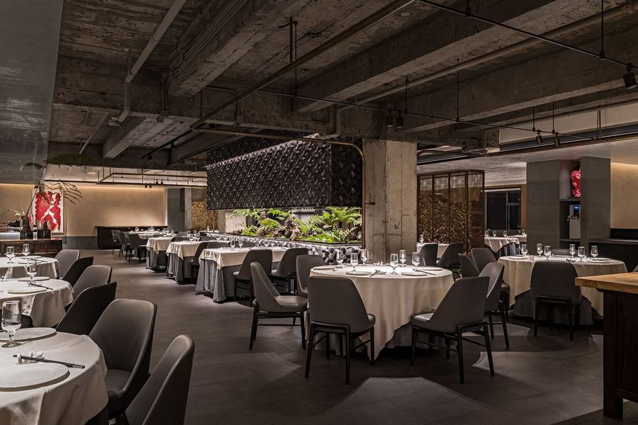 四季民福北京商会占地1,280平方米,位于繁华的CBD,周围环绕着写字楼和热闹的住宅社区。遵循品牌不断升级的策略,IN.X在有限的空间里打造了一个微缩的宇宙,山、石、草、星、海岸都在其中隐约出现。由此,四季民福品牌的空间体验在全新设计上取得了突破。