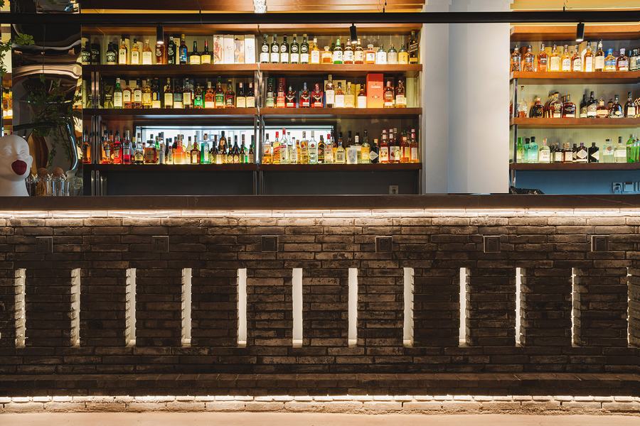关于威士忌酒的理解,我们多次讨论过,通过与甲方的沟通,了解内心的想法和共识,未来我们都想要一个什么样的地方和感觉,我们总结出四个关键词:沉淀、宁静、回味,和错觉。从这些点出发,我们将自己的感受融入到空间中,从而呈现出粗犷、简洁、反思和对比的条件。所以地面选用青砖水泥自流平,从室外延伸到室内。位于空间轴线中央的青砖地板,隐约表现出来。吧台以青砖为主体,墙面采用微水泥和肌肉漆,让粗犷的材质呈现出户外的质感。同时,我们在室内也使用了镜面不锈钢,以表现空间场景的反射和扭曲。与青砖等粗糙的材质形成了完全不同的对比,拓宽了不同质感的张力和感觉。