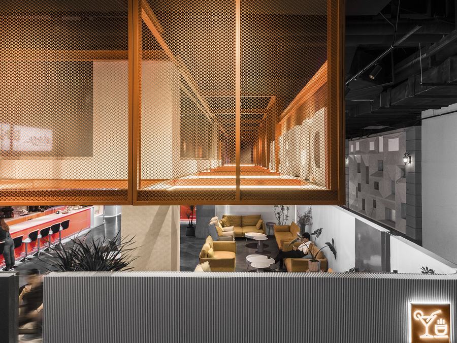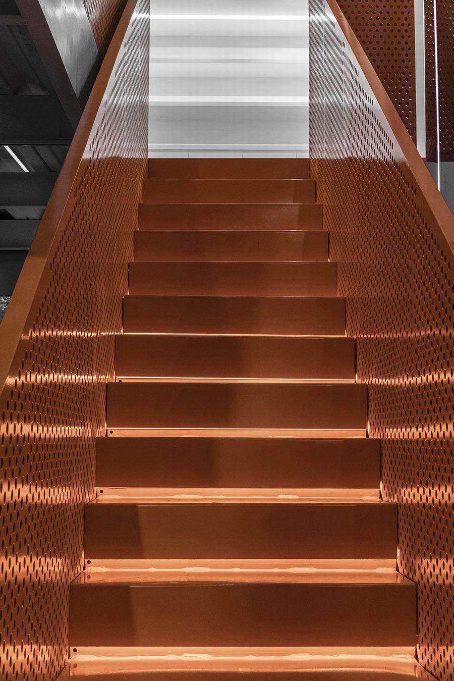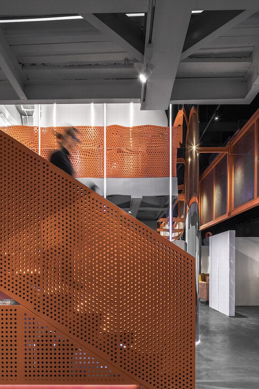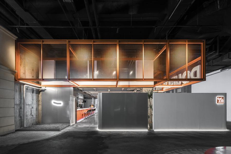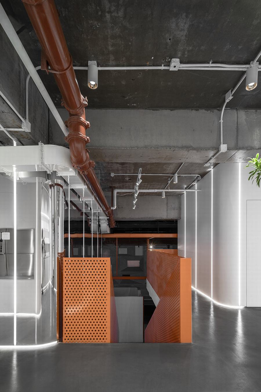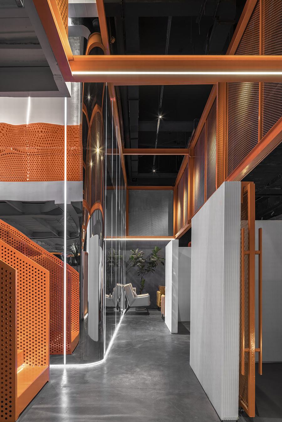 橙色因其视觉冲击力和正能量的提升而被广泛应用于许多商业场景中。在这次实践中,建筑师试图进一步激发橙色在黑暗的地下空间中的能量功能,为沉闷的地下商业街创造一种全新的场地体验。