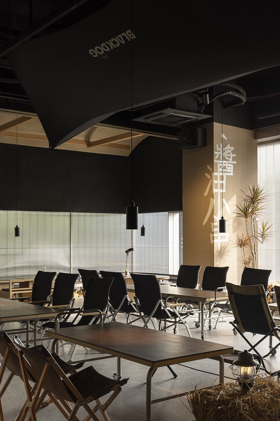 实际上,现实世界中的空间与几何和物理方法所定义的空间是不同的。它们是具有独特意义的抽象空间,但这预示着虚拟模拟现实的可能性。在这个项目中,使用虚拟映像来构建空间的部分,然后将局部部分堆叠起来,创建出奇特的切片。外立面由实心金属波浪板和透明或半透明的天窗组成,仿佛从大角度俯瞰屋顶局部。当夜幕降临,金属穿透半透明的涂层,沉入浓密的黑色,然后填满整个空间。