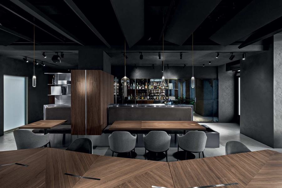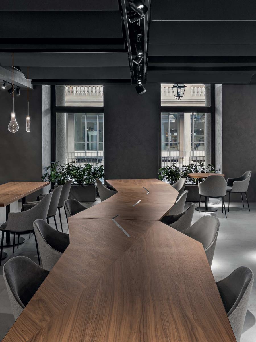 Scatto餐厅采用了模块化桌子的设计,这种独特的家具设计打破了传统的线性布局,为客人带来更加丰富的用餐体验。除了主要用餐区域,餐厅还提供了私人空间,通过特殊的窗户让客人可以近距离观察厨师的烹饪过程。这个私人空间被壮观的枝形吊灯照亮和装饰,明确致敬了历史吊灯的设计。