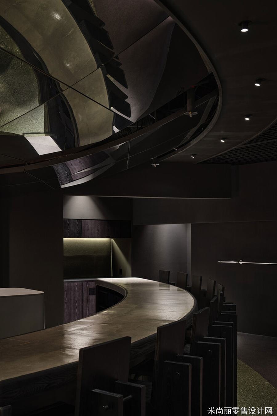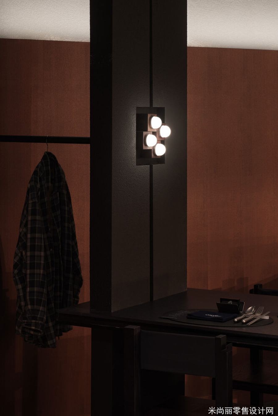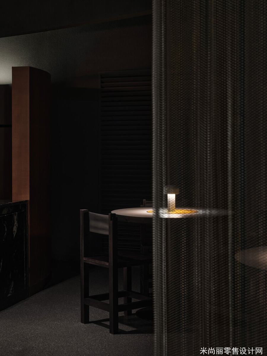虽然空间的整体色调倾向于黑暗和忧郁,但不同区域的不同饰面刺激了味蕾,在舞台般的环境中与“美食”的主题保持一致。从屋漆、石灰华、大理石、红铜到传统的韩国毛笔绘画(chilbo),不同的饰面都贡献了独特的色调,成为整个空间的重点。