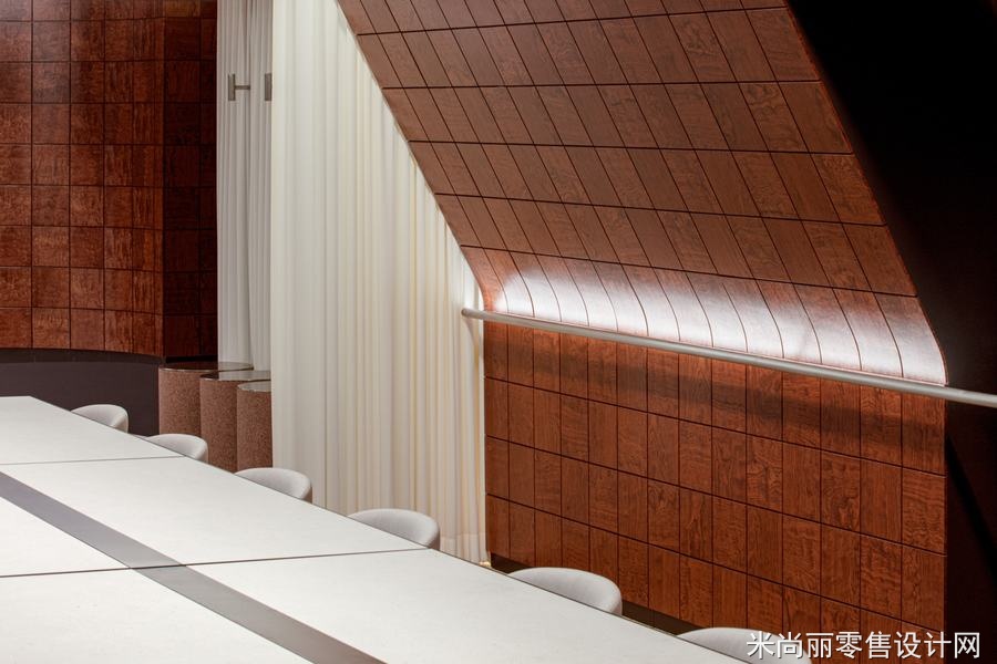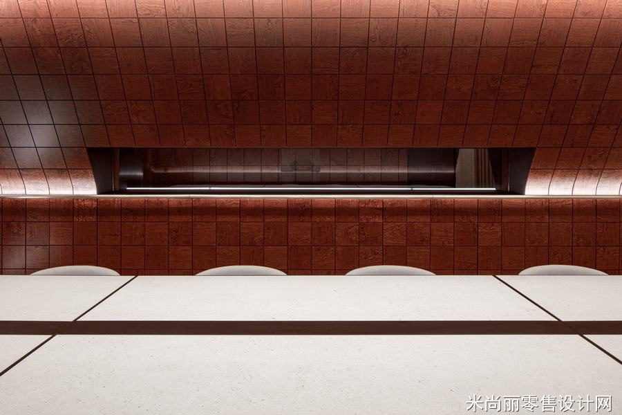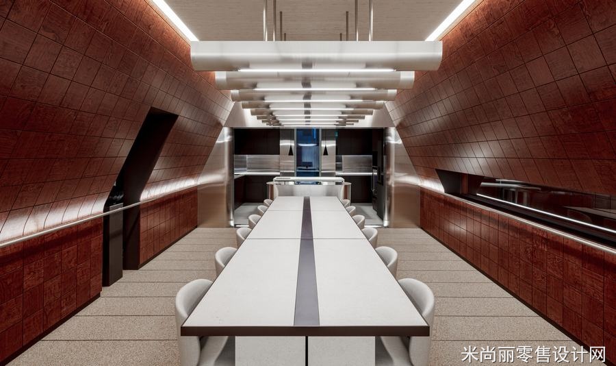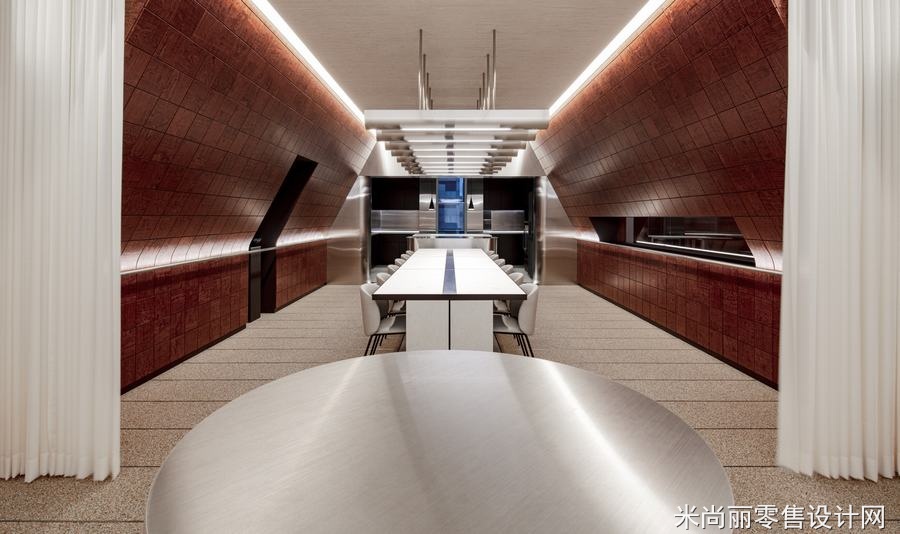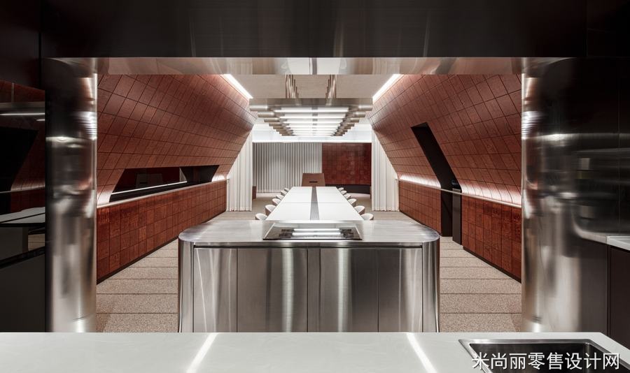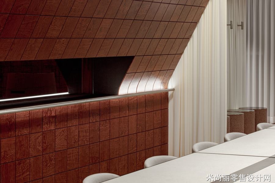 当用餐者就座时,从他们最初进入的地方开始,曾经遥远的长窗现在与眼睛平齐,巧妙地追踪着将他们带到这个用餐目的地的路径。这种设计为客人创造了一个循环的环境,使得整个用餐过程更加自然、流畅。
