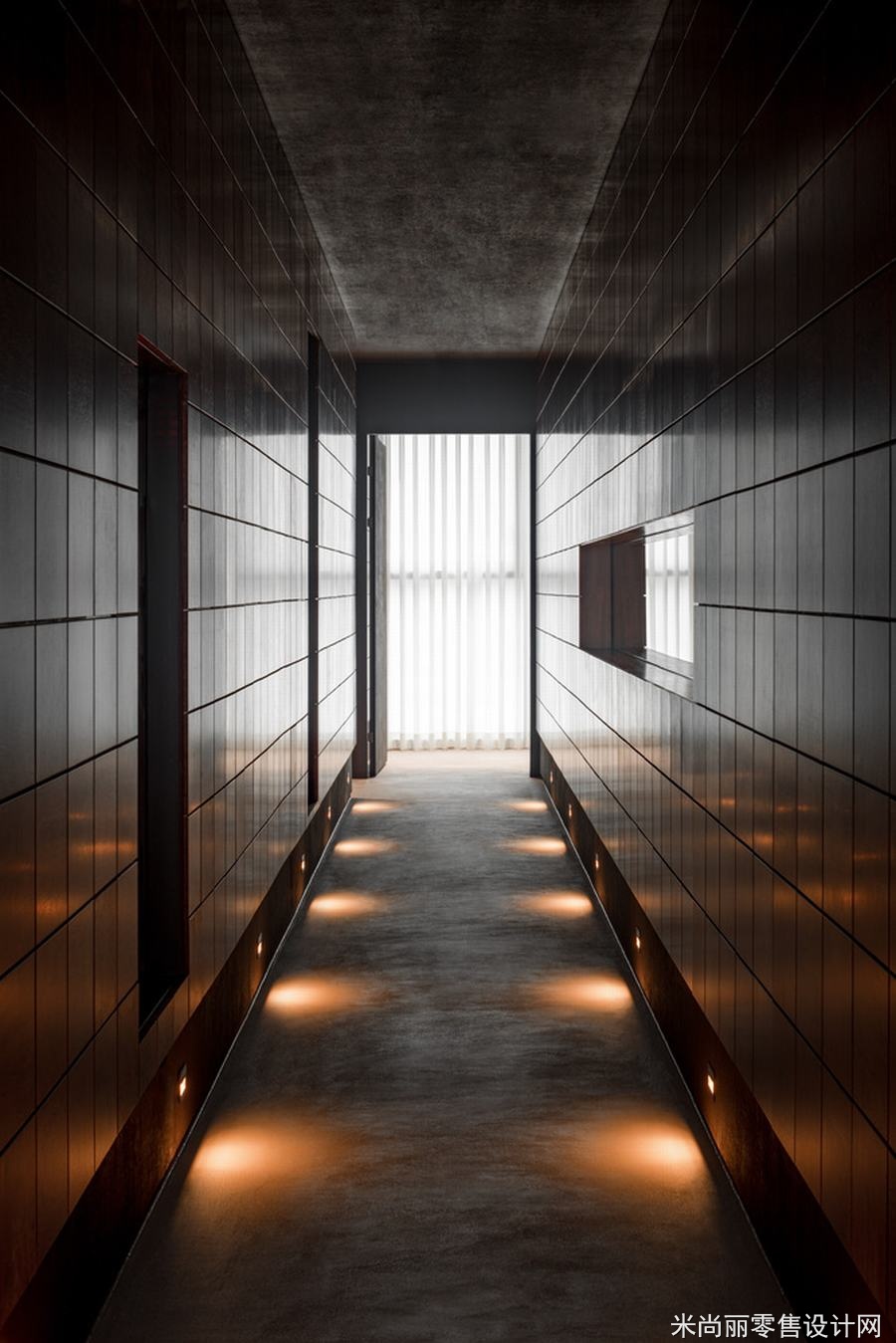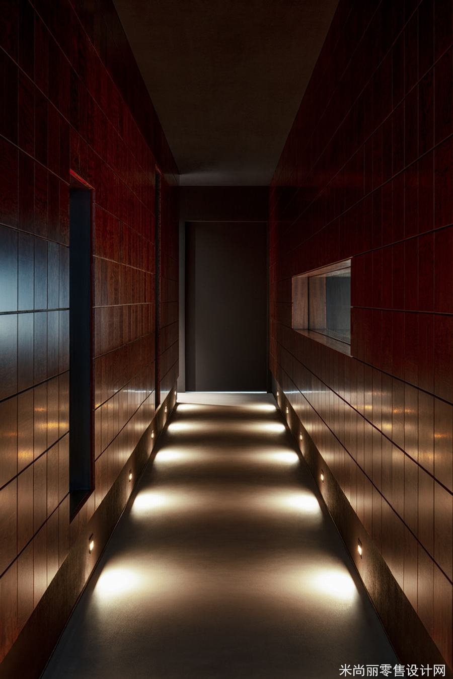 Gastro Circuit是一家集形式和功能于一身的私人厨房工作室。客人沿着一条昏暗的走廊进入这个空间,走廊上装饰着定制的方形木瓦。在中间,齐腰的长窗和短窗提供了一个等待空间的一瞥。当客人沿着走廊前进时,他们被欢迎进入一个光线充足的等候区,沐浴在集成聚碳酸酯结构发出的柔和光芒中。这个建筑元素有双重目的,划定了走廊和餐厅之间的过渡,同时在这个环境中提供了一个中心焦点。