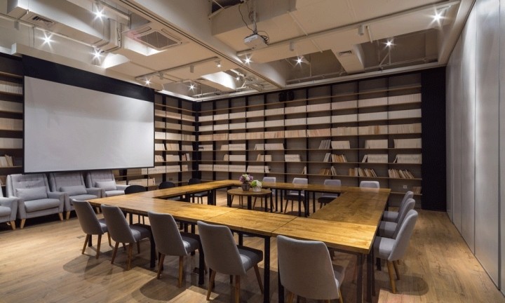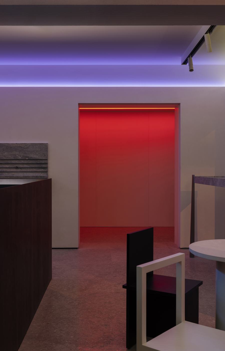 由于城市管理局的规定,改造后的大楼不能在大楼外悬挂招牌。因此,该团队在一层的右端设计了一个小房间,作为休息室,公众可以进入建筑。会客室不仅可以通过液晶显示屏和海报展示招牌和展览信息,还可以为客人提供一个有遮盖的、半开放的空间,用于避雨和短暂停留。