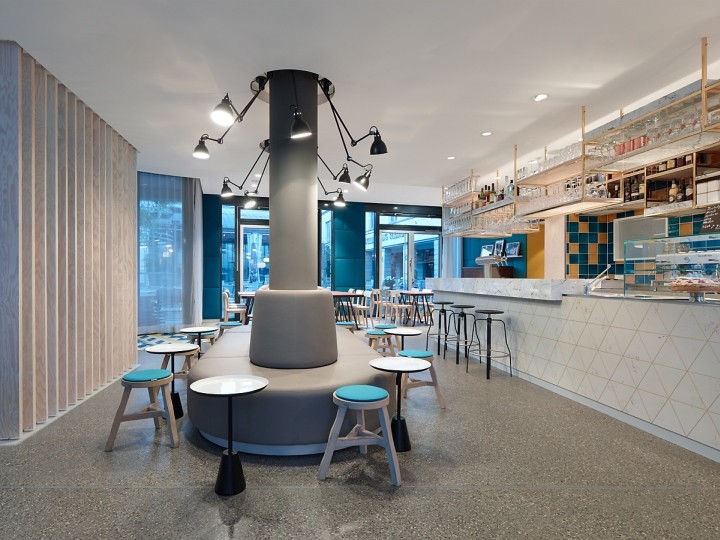 现代室内空间采用有目的的设计元素,例如多个座位配置和可调节的展示架,它们和谐地融合在一起,营造出独特的游客体验。对于柜台后面的咖啡师来说,它使每一个动作都尽可能高效。