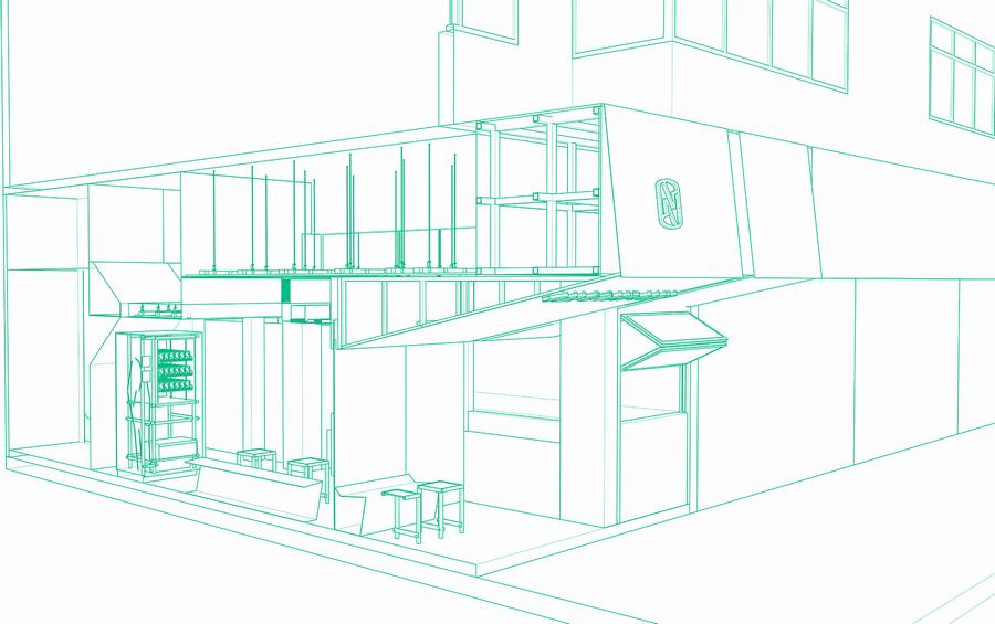 受Indefinite公司委托,MAS准备在上海延平路247号做空间设计。当我们将空间定义为“以一种方便、包容、熟悉和未来的方式表达”时,社区未来便利店的概念开始在适当的时候诞生。