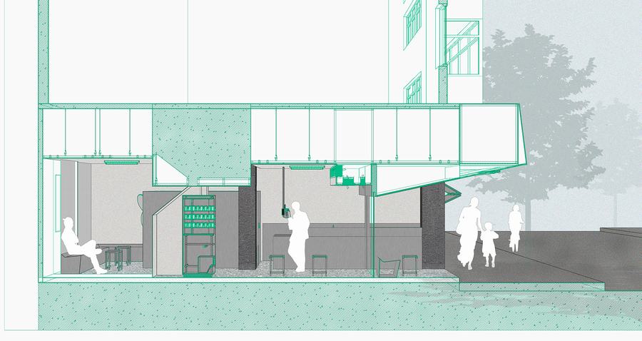 在延平路的老街区里,有一些已经生活了几十年的上海人,也有很多年轻人。在这样一个时尚、包容的地区,人们开始意识到生活的共鸣。为了打造一个宠物友好的公共空间以及社区的社交空间,我们开放了商店入口,使其与街道融为一体。通过模糊内部和外部的界限,我们建立了咖啡和社区之间的联系。