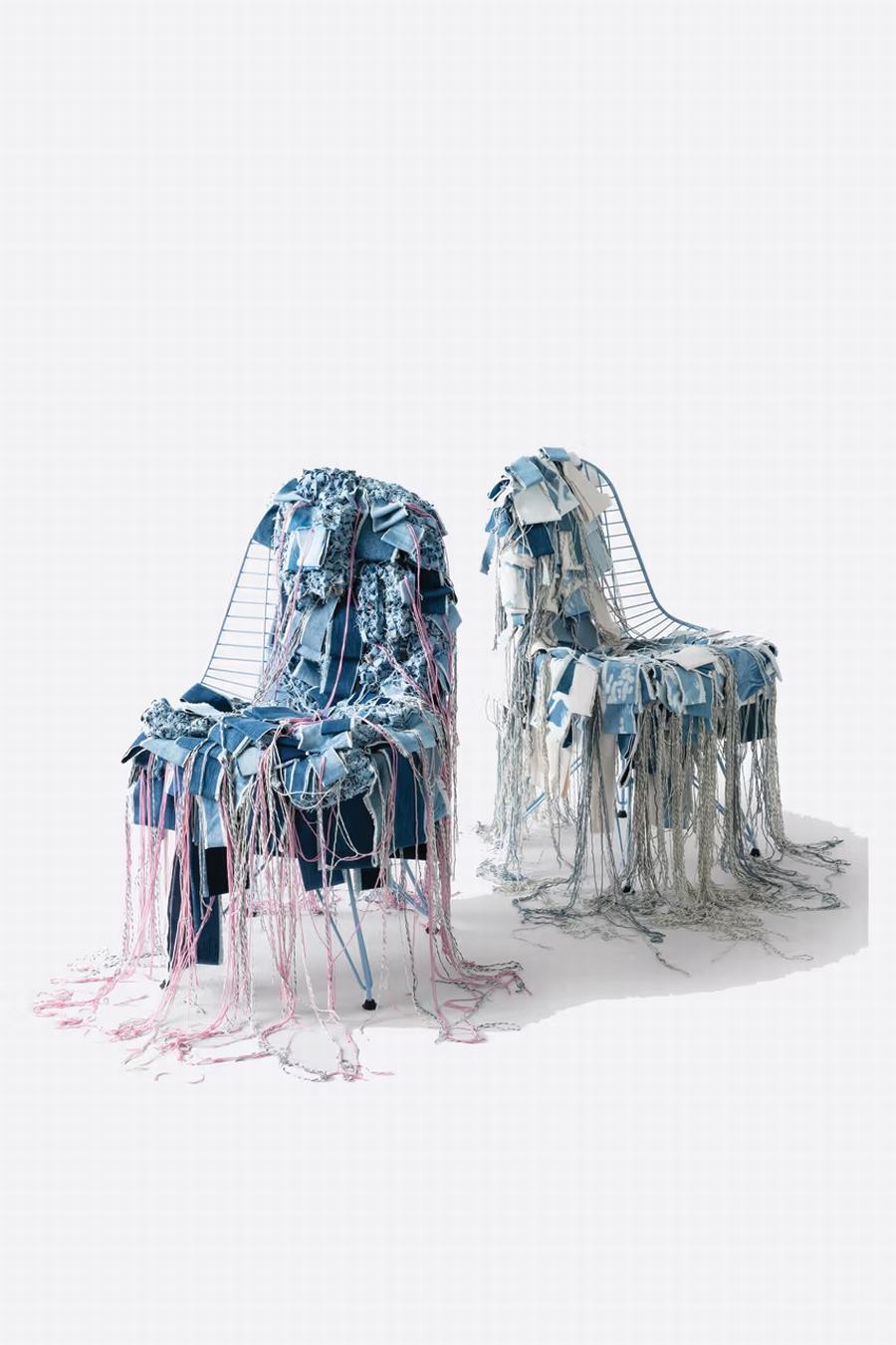 在Icons Re/Outfitted展览中,The Visionary Lab将丹宁裤和座椅的美学完美融合,呈现了拼贴艺术的独特魅力。通过可持续性的设计概念,不同刷色的丹宁裤以拼贴、破坏甚至是切成无数碎片重新组装的方式呈现在二手座椅上,使整个座椅充满了时尚感和艺术感。作为Levi’s 501®的150周年纪念的一部分,这个展览希望唤起人们对于环保设计的关注,并探索丹宁布的创意潜力。