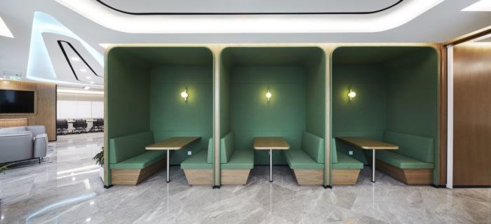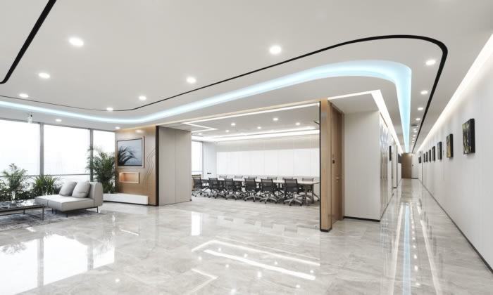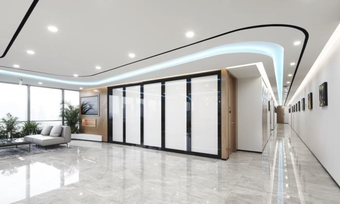 自然光充满办公室,带来能量的流动和活力。大多数周边办公室的玻璃墙最大限度地利用了自然光,并能看到内部空间。会议室在可操作的墙壁中使用偏光电子玻璃系统,在不影响办公室开放性的情况下保证会议室内部的隐私。接待处、会议室和商务休息室可以合并举办活动。