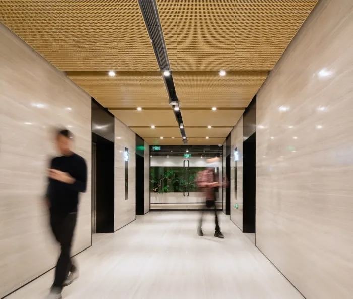 楼梯和生活墙贯穿所有社交空间。墙的框架从树叶后面露出来,并将这件作品与空间其他地方的棱角设计联系起来。
