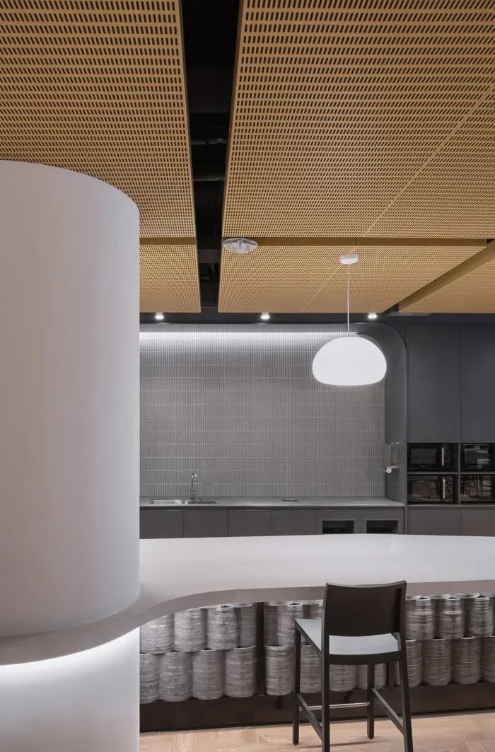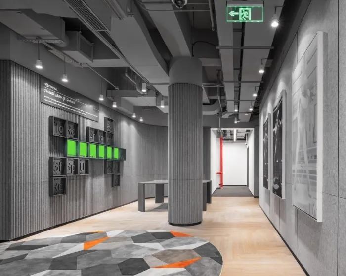 在宽敞舒适的休息室,自然光线让每位员工都可以在下午茶或早上喝咖啡时享受时光。我们使用元素周期表创建了一个引人注目的图形。墙上的每个元素都象征着 NVIDIA 品牌的核心部分。人工智能的图形语言被生动地描绘在办公室的墙上。每张图片都提醒您,技术在 NVIDIA 继续处于领先地位。