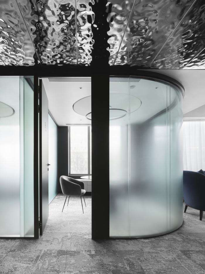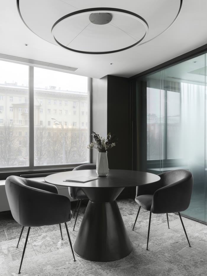 照明始终保持对眼睛友好:独特的筒灯概念使光源几乎察觉不到,在会议室,客户可以通过应用程序控制光氛围。