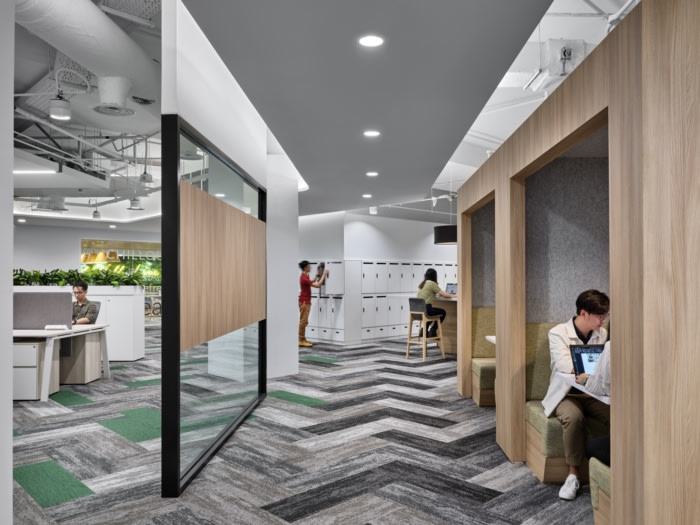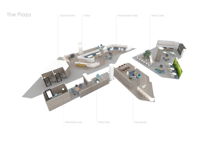 垂直和横向的自然景观进一步连接了空间,从而形成了一个亲生物的环境。从根本上说,这些组合的主要组成部分为员工提供了一个灵活而自然的工作环境,既可以专注于个人,也可以通过动态的网络工作场所作为一个有凝聚力的团队。