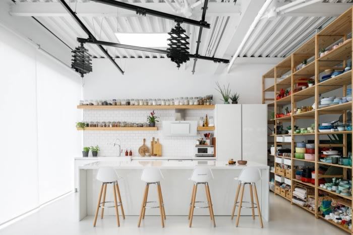 设计公司总部最重要的问题之一是创造一个表达并符合企业文化的空间。在这种情况下,E-goi 和 Clavel 的厨房都呈现出一种相当非正式的管理方式,尽管非常专业,并要求我们提供一个可以表达这一点的空间,一个流动的、平等的、异质的、朴实无华的空间。