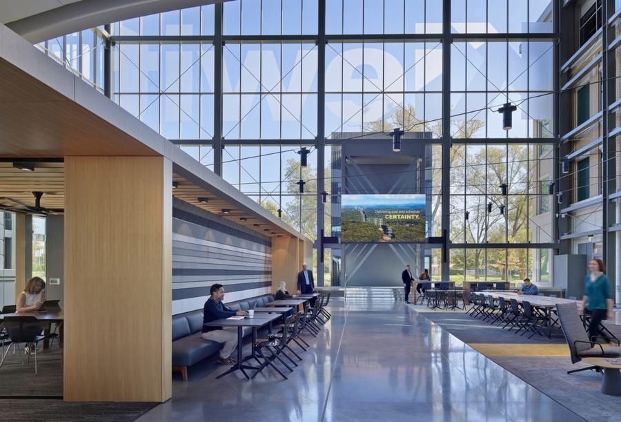 促进场所营造和与社区的联系。附近的 Lenexa 市中心,包括商店、餐厅、小径、图书馆和水上运动中心,都在 Kiewit 人的步行范围内。