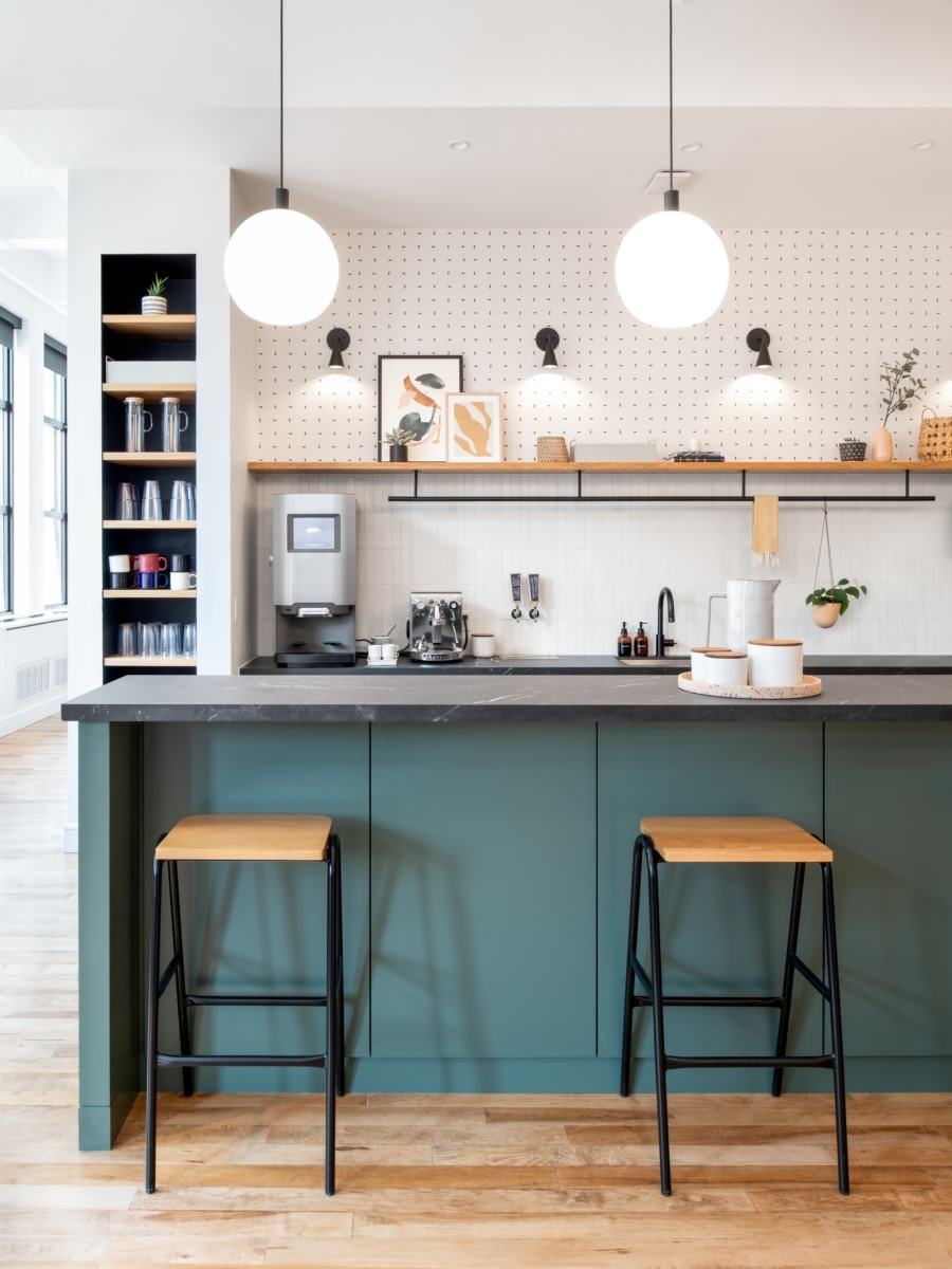 Grow 办公室包括七个独特且单独设计的会议室,范围从 2 到 20 个座位、三个迷你日间办公室、一个大的分离室和两个较小的分离空间以及一个厨房咖啡厅和餐厅/客厅(带有咖啡店的氛围)。整体设计现代,经典灵感,营造出一个生活,明亮,通风,舒适的工作场所,简约而微妙的活力。厨房咖啡厅的吸音板瓷砖、吊坠和色彩丰富的室内装潢营造出令人惊叹的视觉效果,同时在功能上也为用餐、会议或低头工作提供了舒适的空间。还有一个内置的“赃物展示”,用于展示客户赠送的品牌商品。