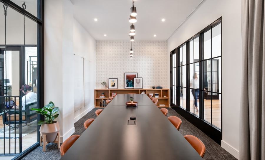 随着对虚拟客户会议需求的增加,Grow 的设计考虑了虚拟客户体验。有意识地考虑了通过缩放屏幕看到的背景客户。为了确保通过屏幕获得有趣的视图(而不是空白的灯箱),每个会议室都被赋予了自己的个性,通过壁纸、家具、艺术品等来反映 Grow 公司品牌的不同方面。这样,客户可以获得一个透过电脑屏幕感受 Grow 的品牌,仿佛置身于实体办公室。