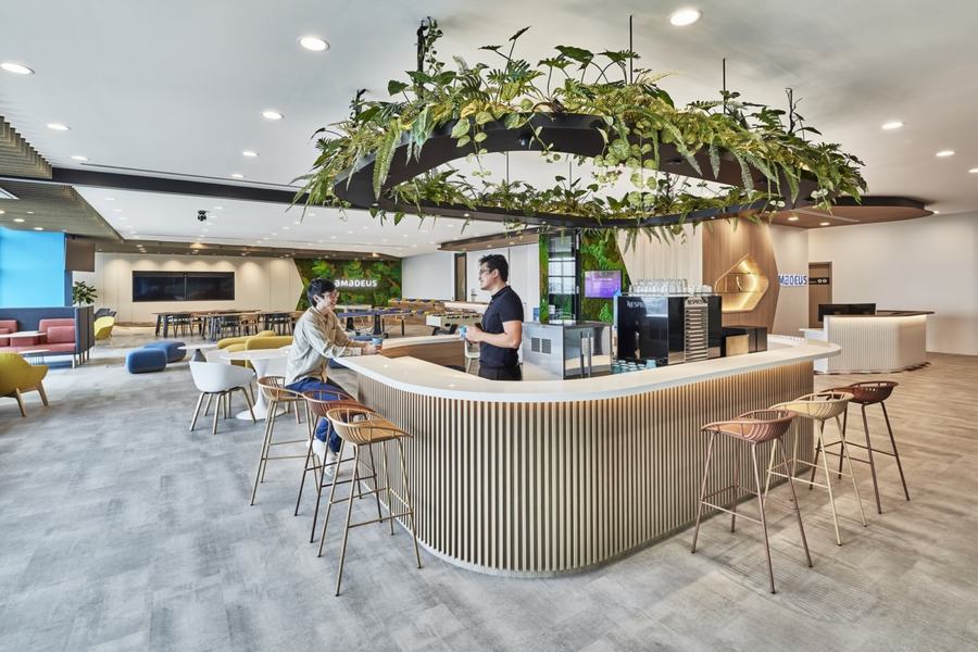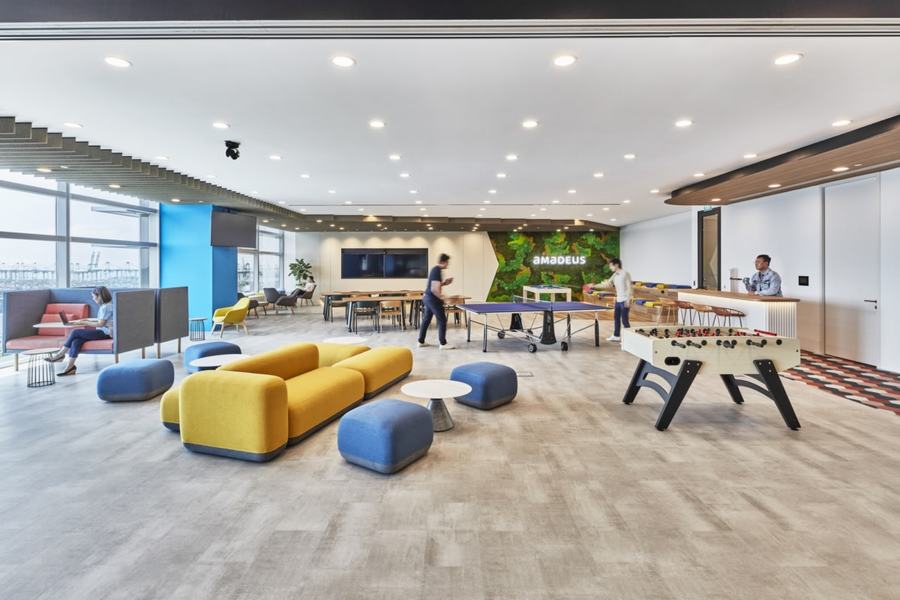 想象一下,在一个可以看到海景的地方用笔记本电脑工作。当你需要休息的时候,只要走到附近的咖啡吧、台球桌或桌上足球桌去放松一下就可以了。这还不是全部。如果你的情绪或需求发生了变化,你也可以选择在办公室的不同地点工作。听起来好得让人难以置信?欢迎来到Amadeus新加坡办事处。